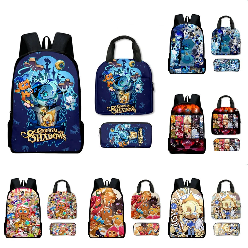 3 uds Cookie Run: Kingdom Shadow Milk Cookie bolso escolar dibujos animados Anime estudiante lápiz bolsa de almuerzo regalo de cumpleaños para niñas niños