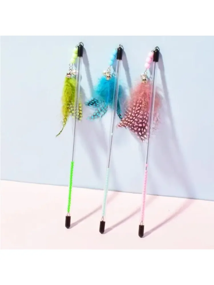 3 uds juguetes para gatos palos de plumas para gatos mango retráctil juguete para gatos juguetes interactivos de plumas para gatos con gatito juguete rompecabezas productos para mascotas