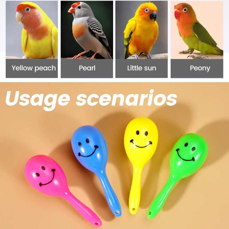 El juego de maracas de martillo de arena con campana sonajero para loros de 2 piezas para pájaros es una adición vibrante y atractiva al tiempo de juego de cualquier pájaro mascota.