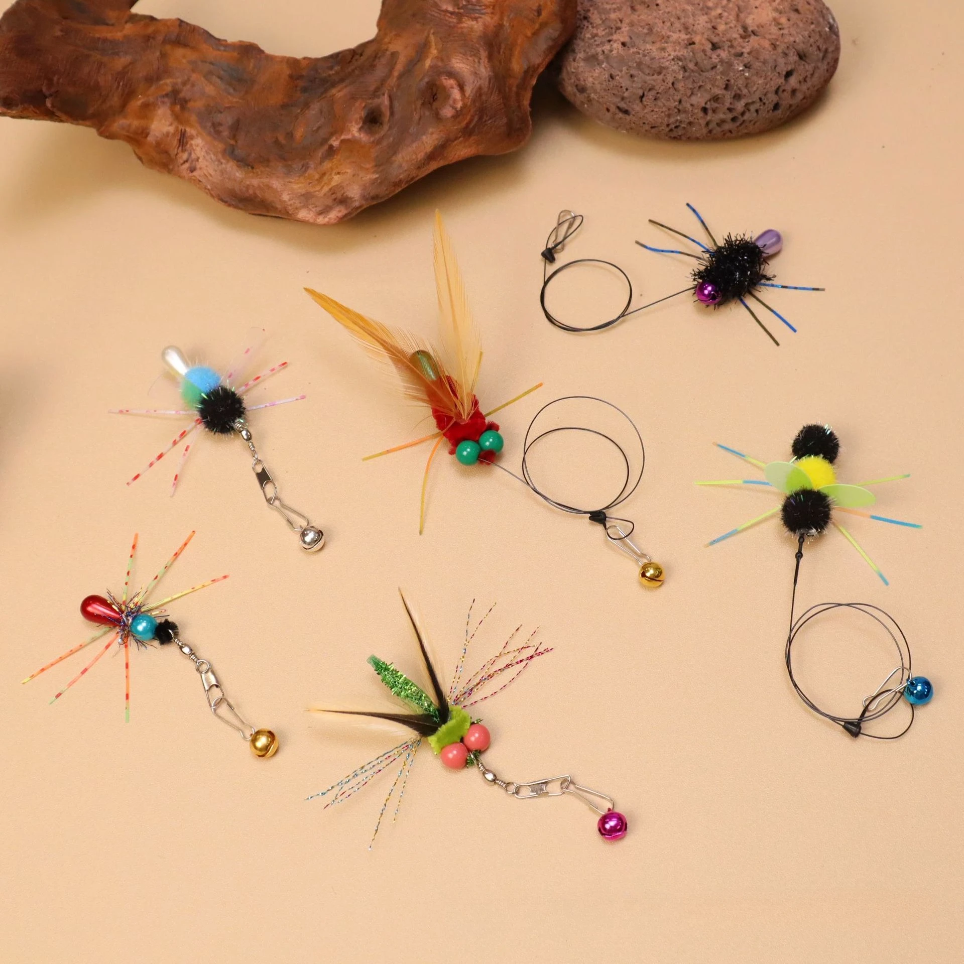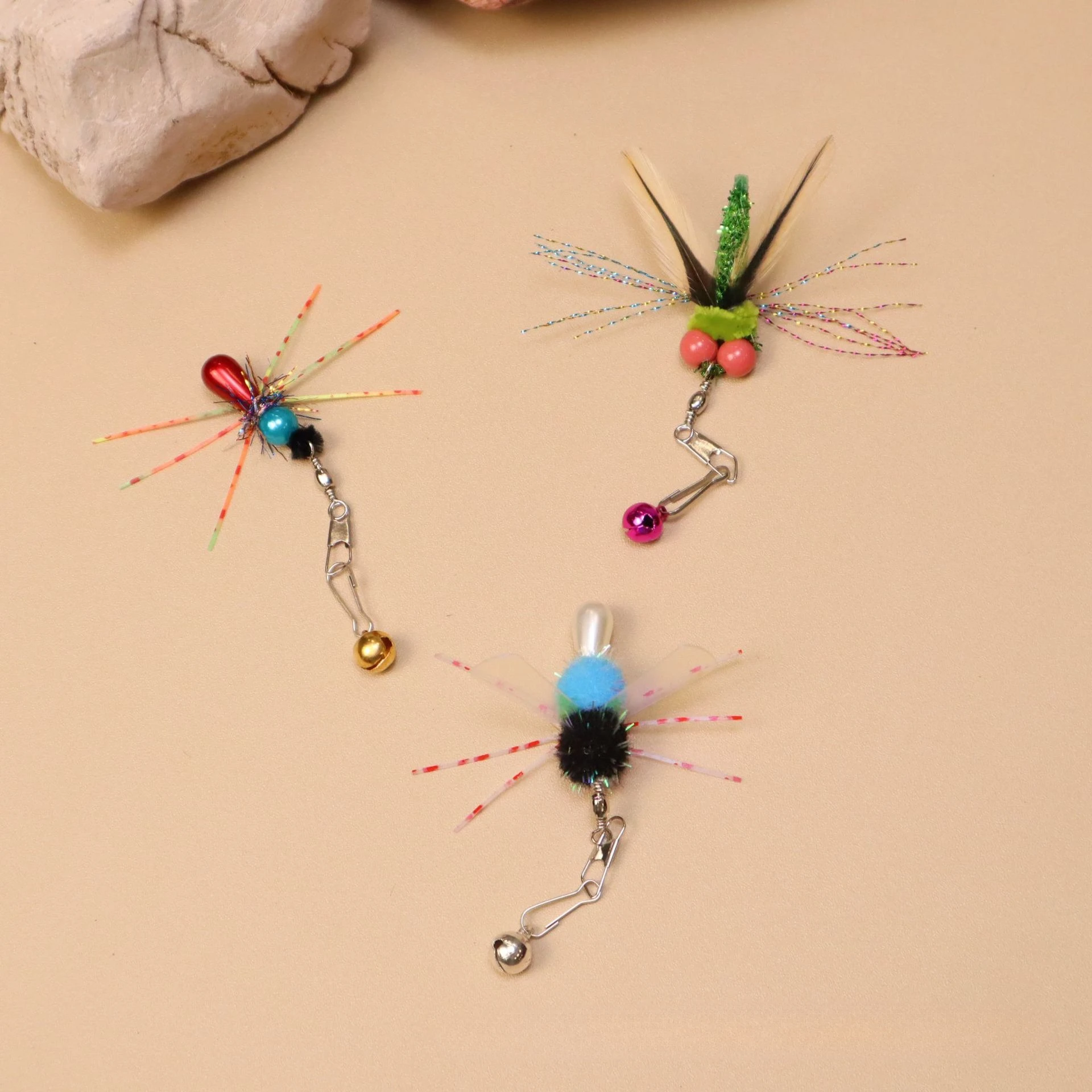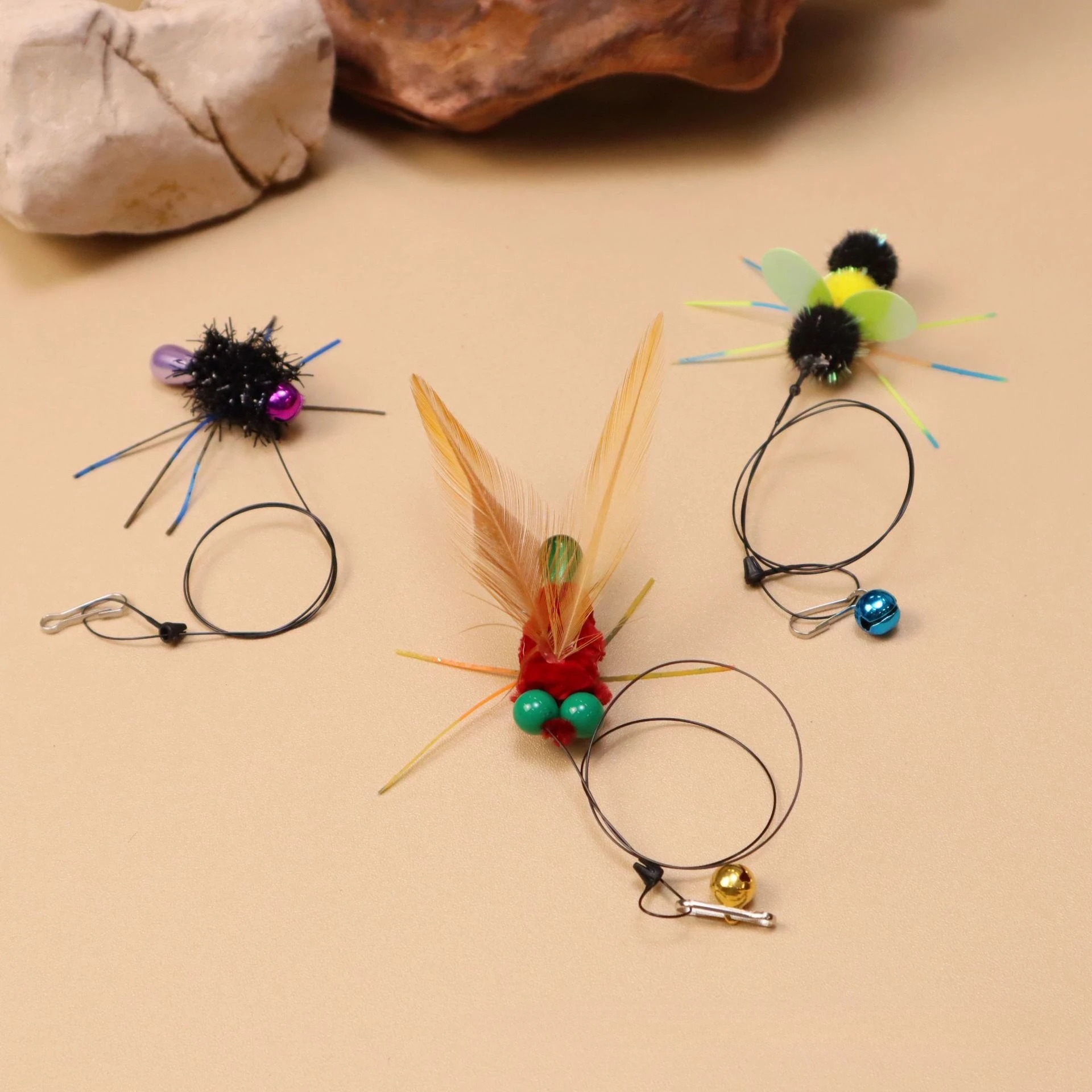 3 uds simulación colorida insecto gato Teaser palo cabezas pluma abeja libélula mascota juguete
