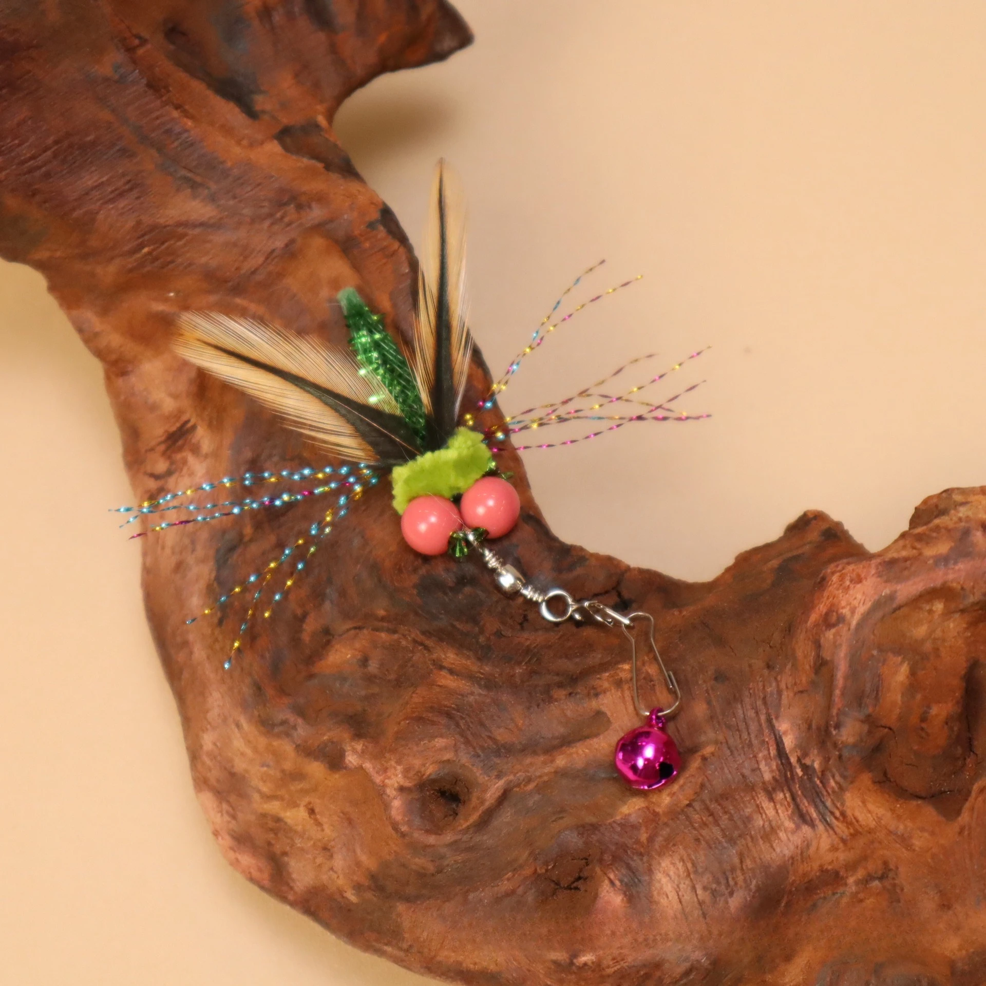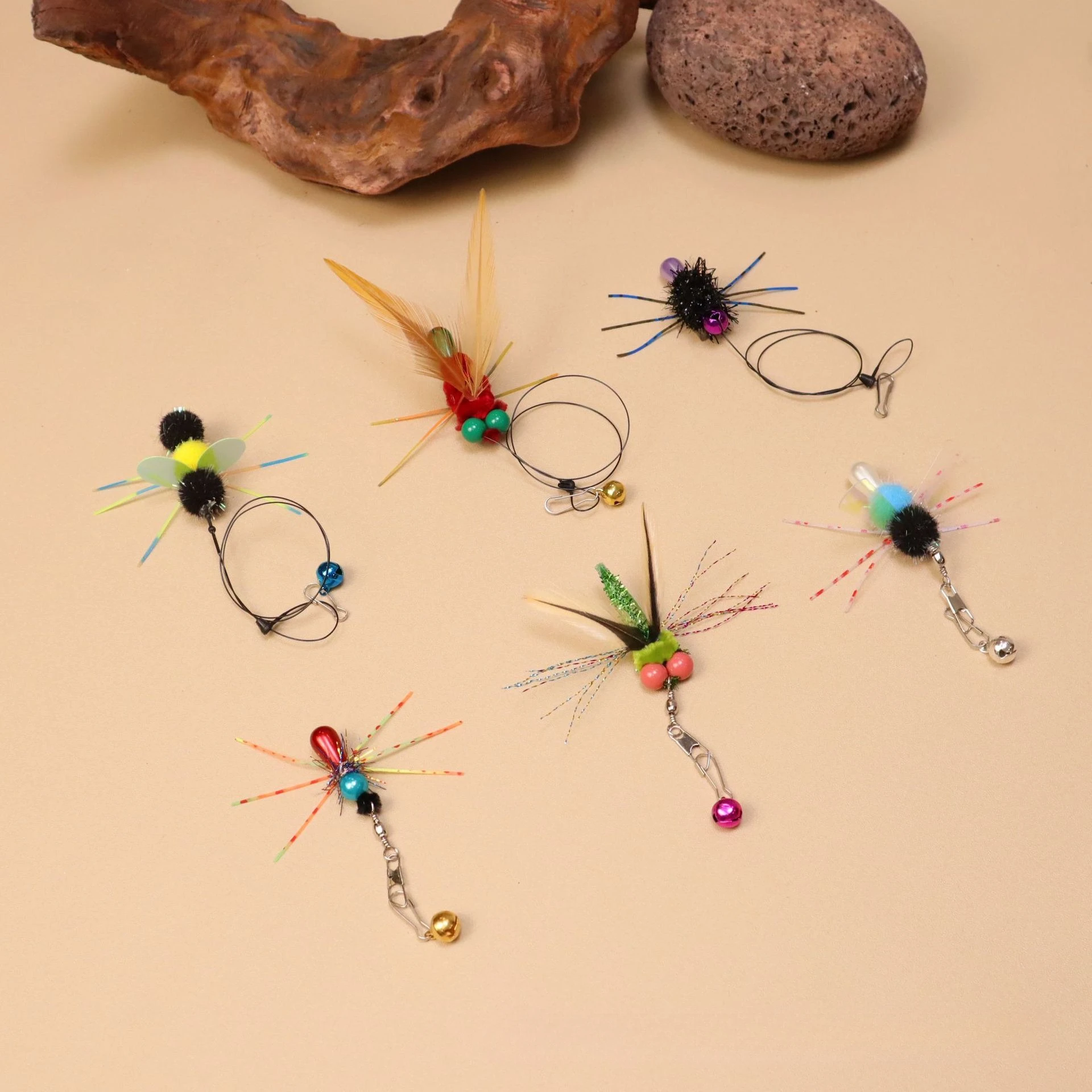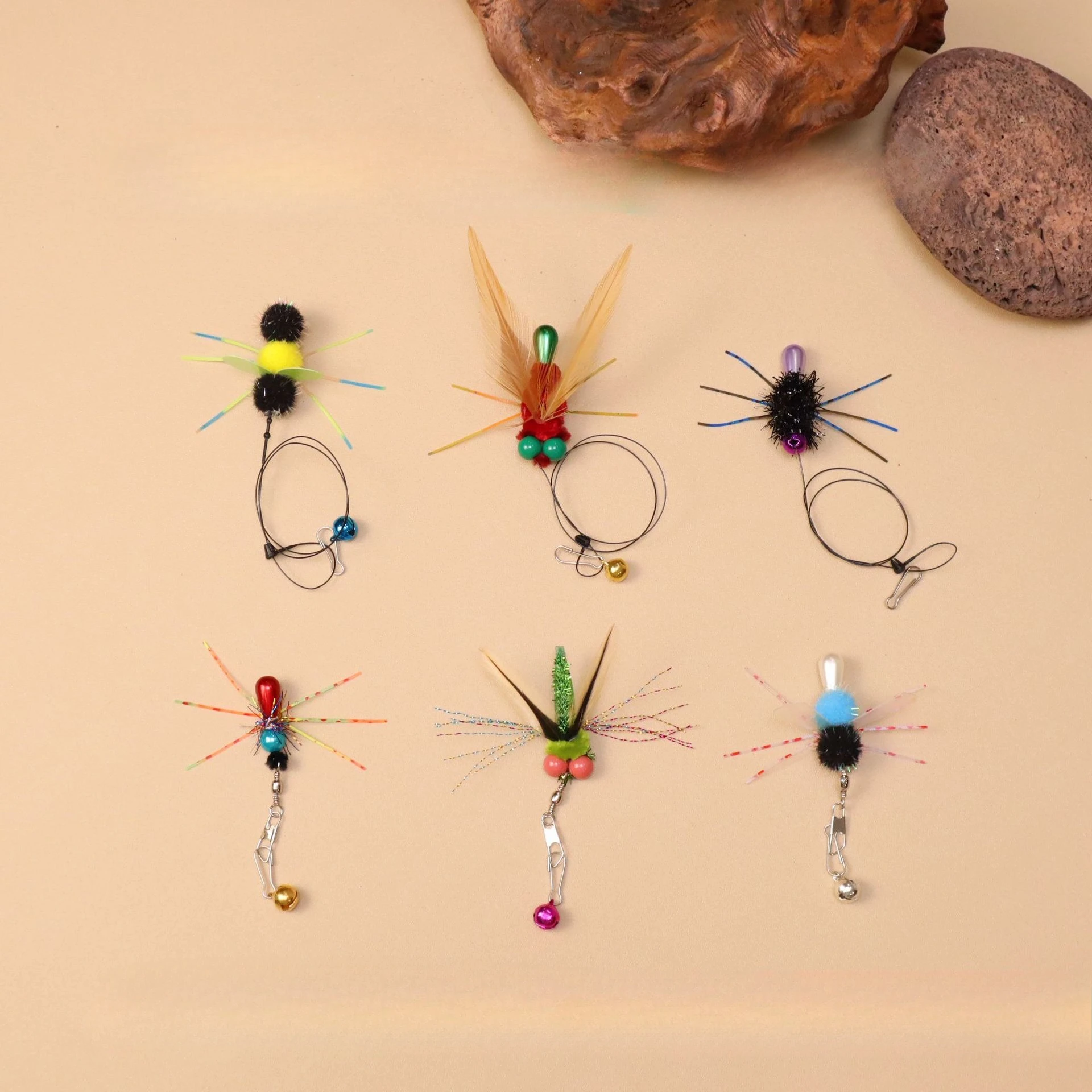 3 uds simulación colorida insecto gato Teaser palo cabezas pluma abeja libélula mascota juguete