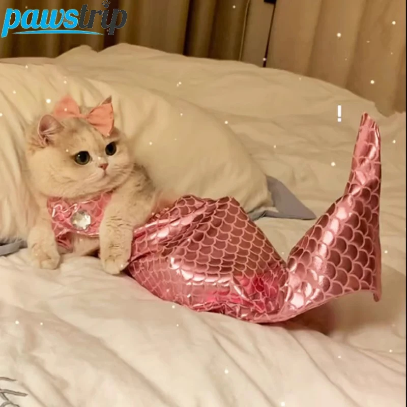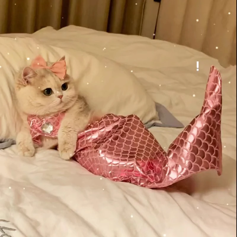 3 unids/set creativo divertido gato sirena ropa con tocado ajustable gato Cosplay vestir gatito fiesta disfraz gato Accesorios