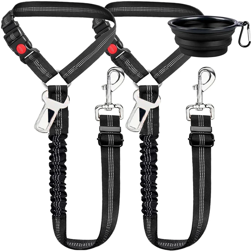 3 unids/set juego de cinturón de seguridad de coche para perros ajustable de alta resistencia-sistema de sujeción de mascotas elástico, duradero y fácil de usar para cabeza de vehículo