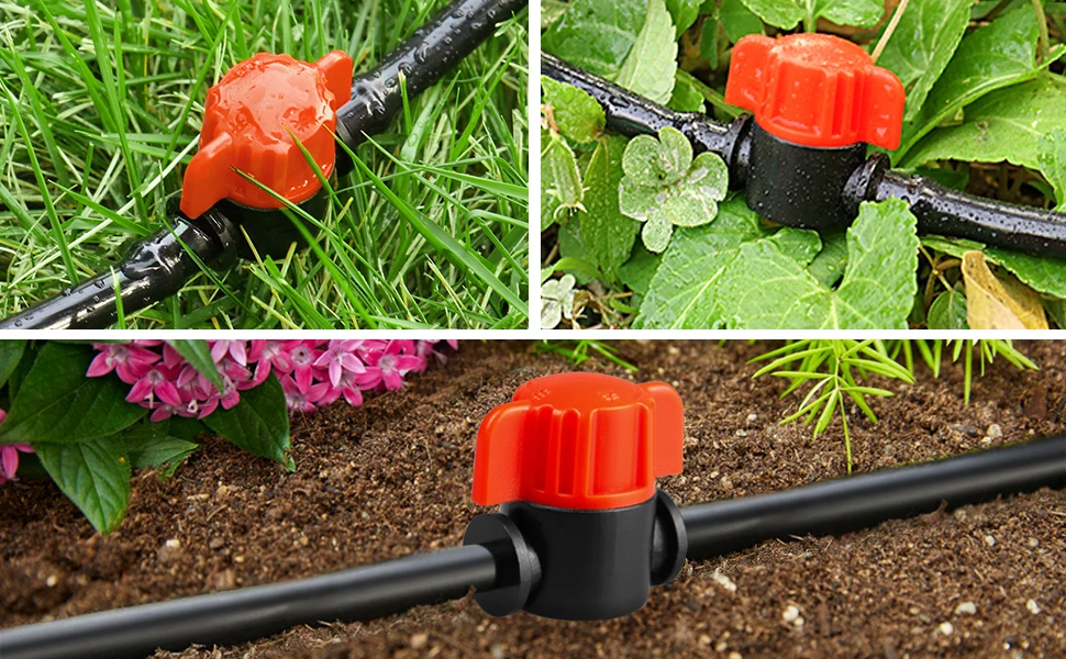 *Válvula de control de flujo de agua con púas de plástico de 1/4 de pulgada Perfecta para el riego de flores, plantas, césped, agricultura, villas y riego industrial.