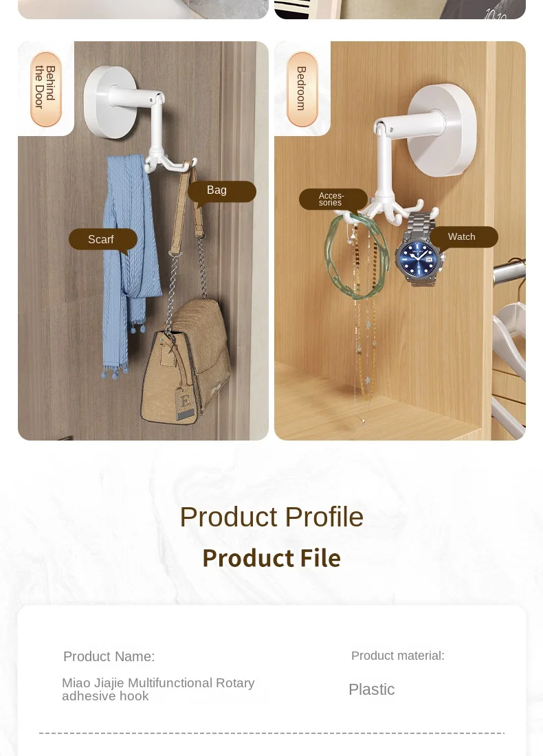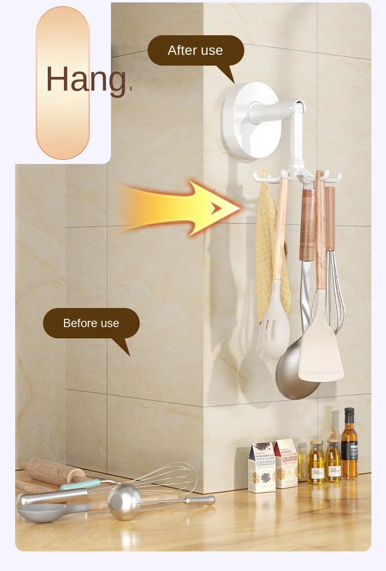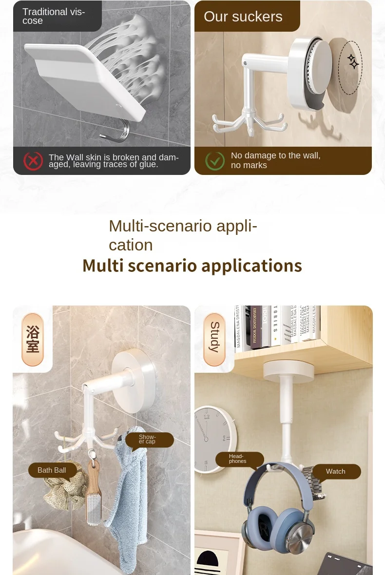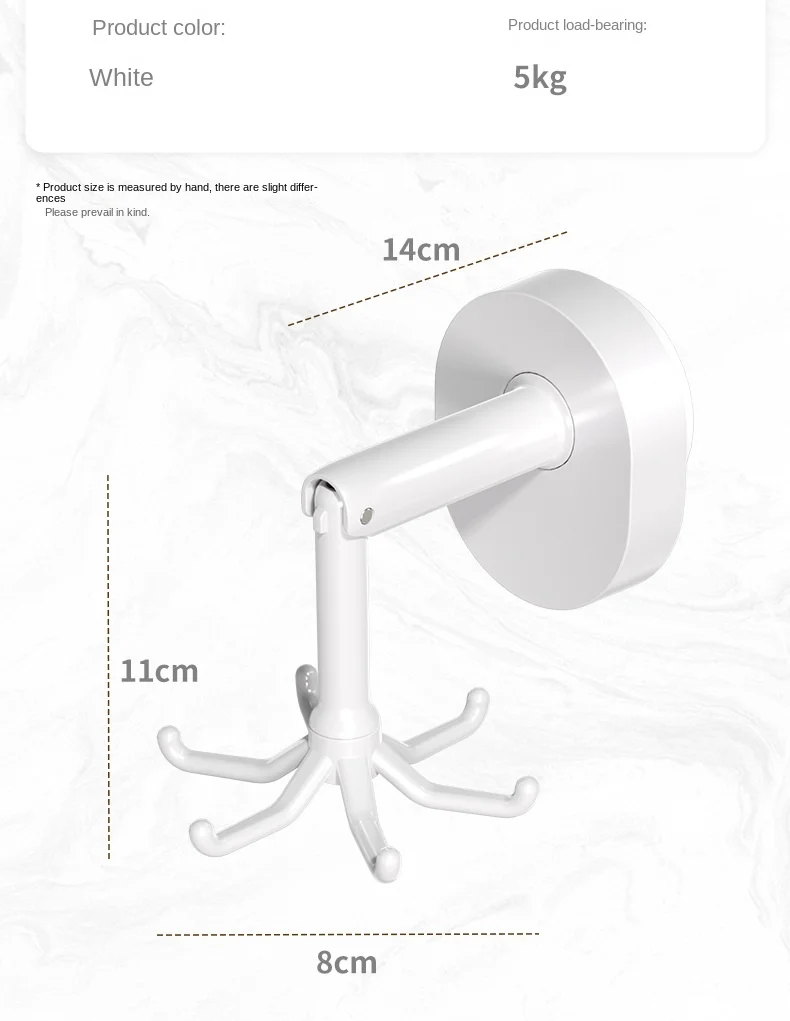El paquete incluye: 1 * gancho giratorio adhesivo de seis garras