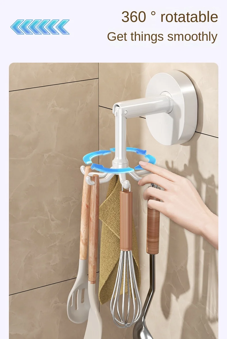 360° Estante giratorio con gancho giratorio, ganchos plegables de alta calidad sin perforaciones, soporte para toallas, organizador para el hogar, estante de almacenamiento colgante