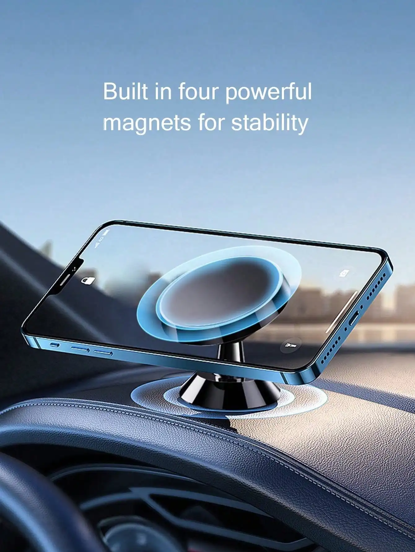 La fuerte succión magnética garantiza que su teléfono permanezca seguro y estable, incluso en carreteras con baches, lo que mejora la seguridad durante la conducción.