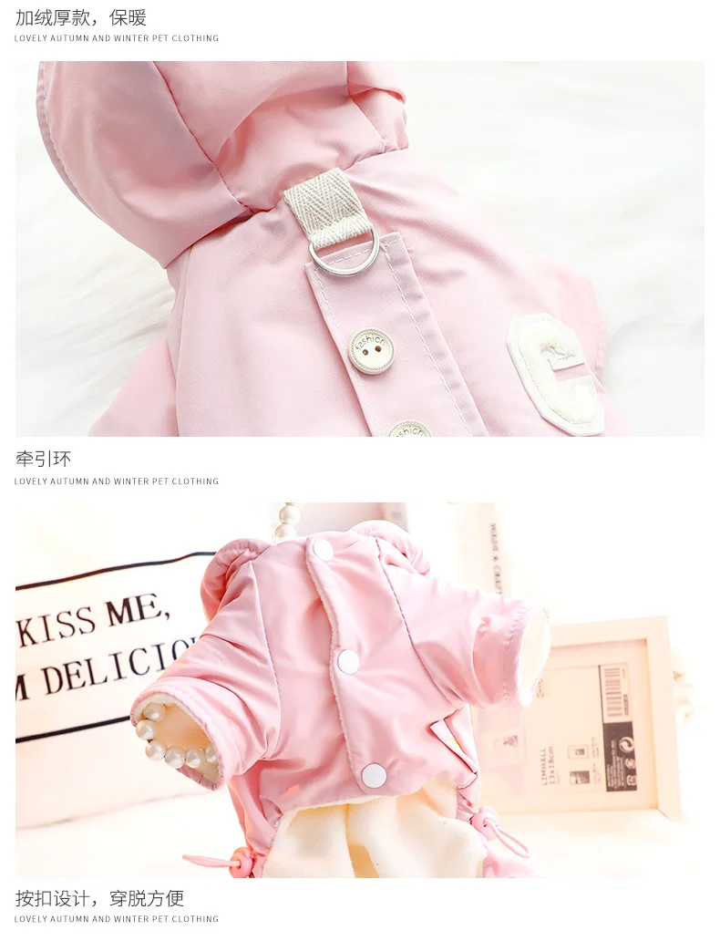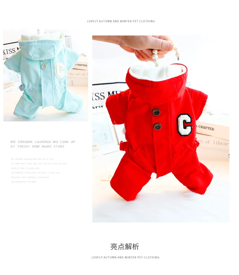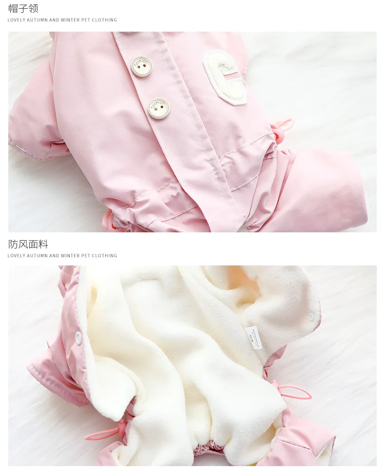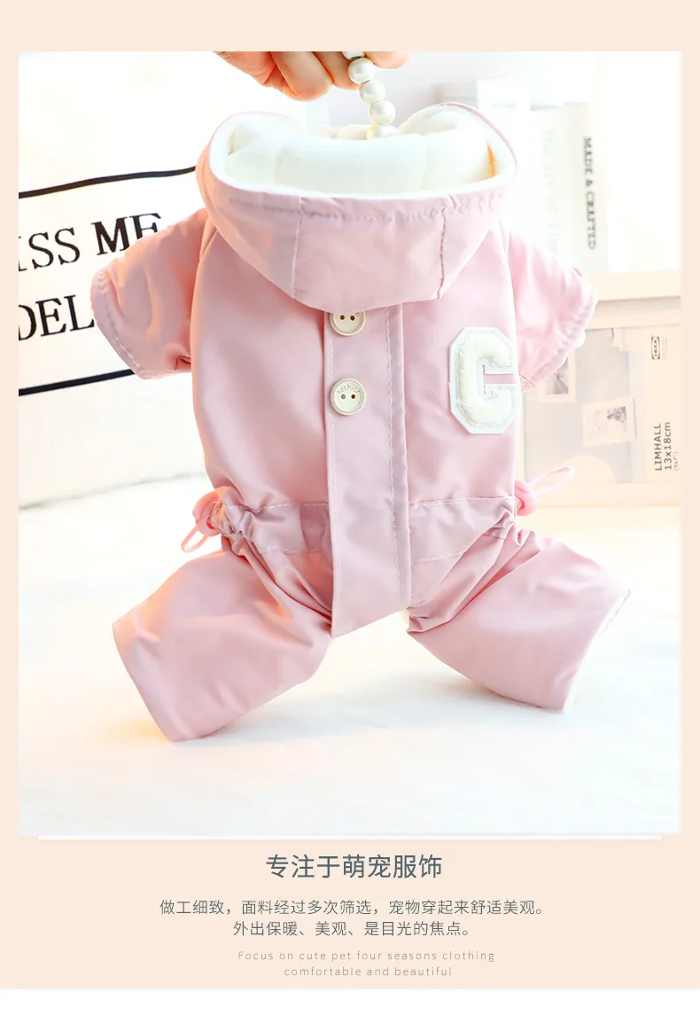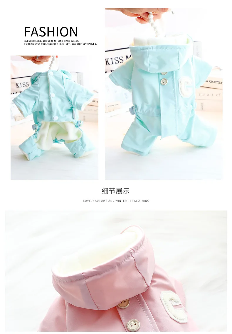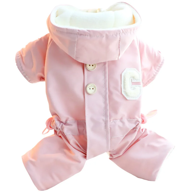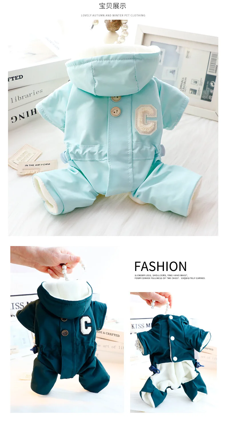 가을 겨울 후드 점프 슈트 모자와 두꺼운 방풍 작은 개를 끌 수있는 4 다리 자켓 테디 베어 애완 동물 강아지 옷