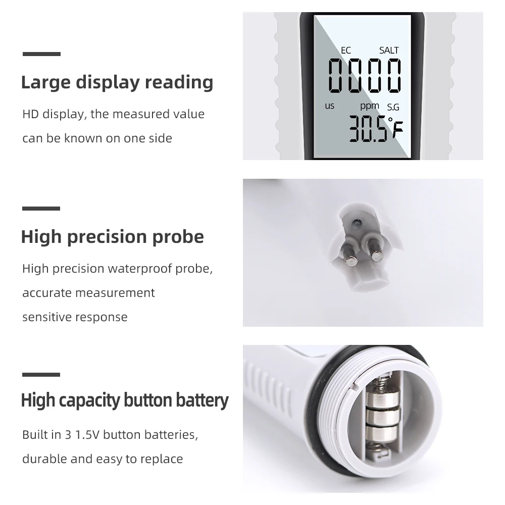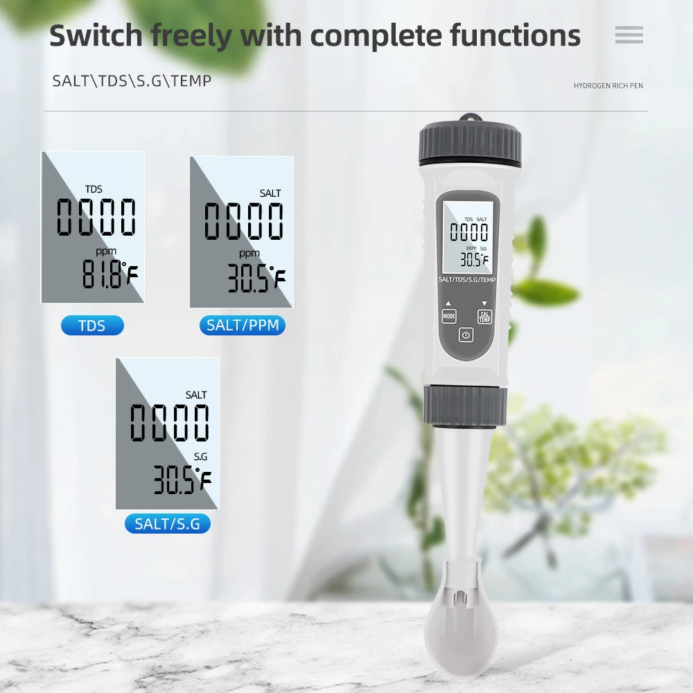 Medidor TDS 4 en 1, concentración de sal de agua, TDS EC medidor de temperatura, probador Digital de calidad del agua para piscinas y acuarios