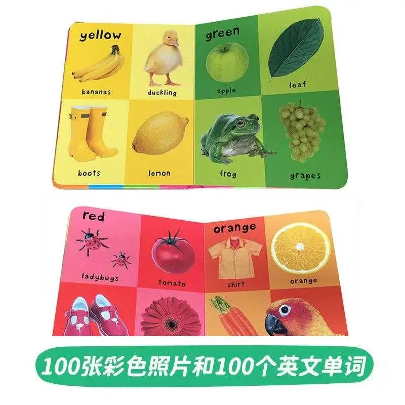 4 libros Montessori primeros 100 palabras en inglés aprendizaje libro de cartón animales colores números idioma libros de imágenes físicas
