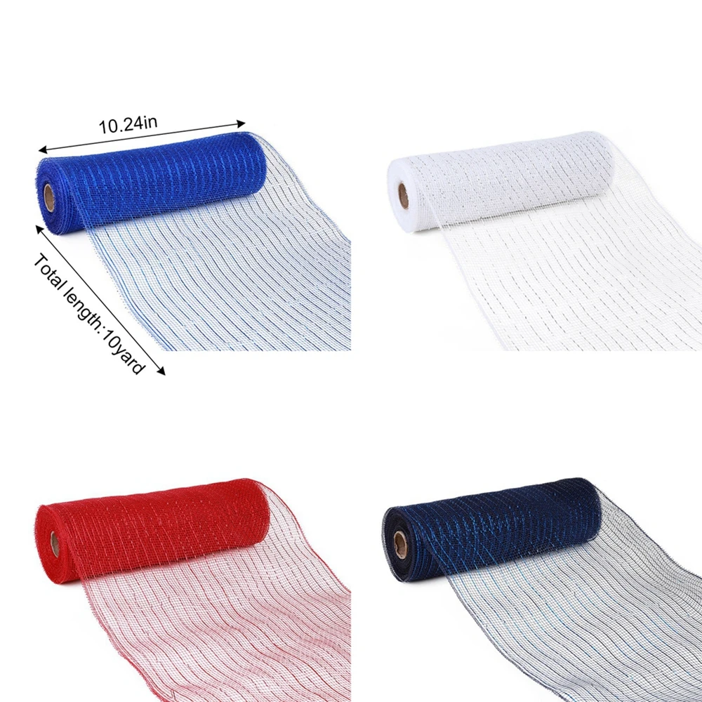 3. Tamaño grande: 10,24 pulgadas de ancho x 30 pies de largo (10 yardas) por rollo.Estas telas de malla son perfectas para una variedad de usos decorativos, como hacer lazos, guirnaldas, cestas de regalo, arcos de bodas, proyectos de decoración del hogar y más.Puedes utilizar cintas para decorar eventos temáticos como San Valentín, Pascua, Día de la Independencia, Acción de Gracias, fiestas de Navidad, bodas, etc.