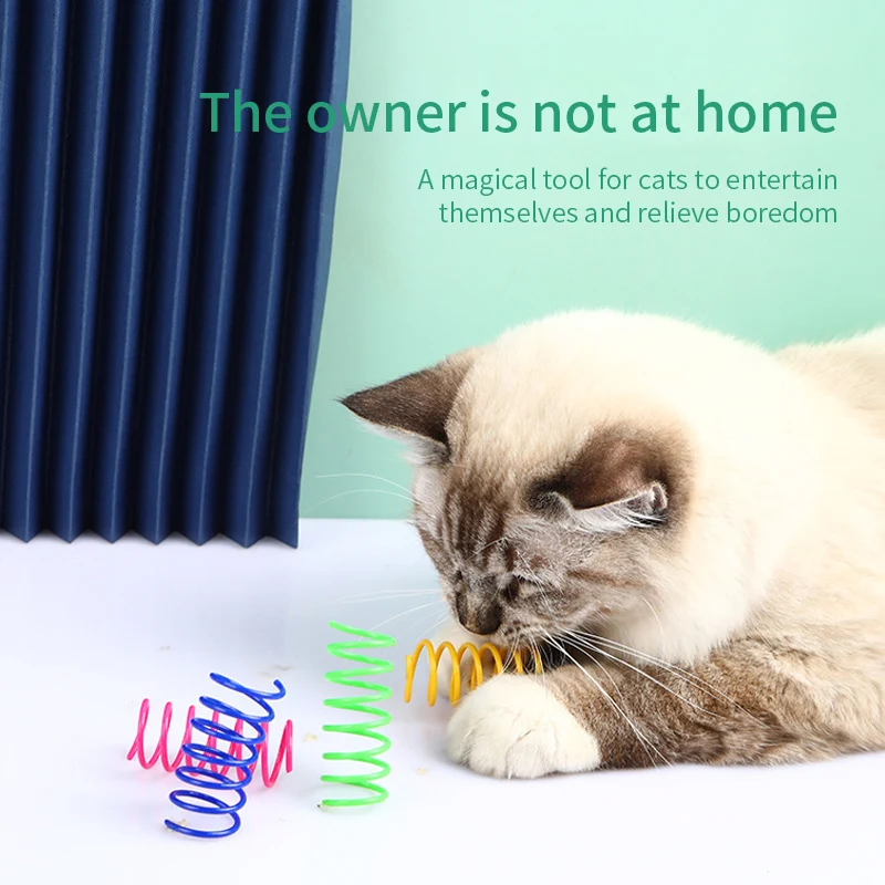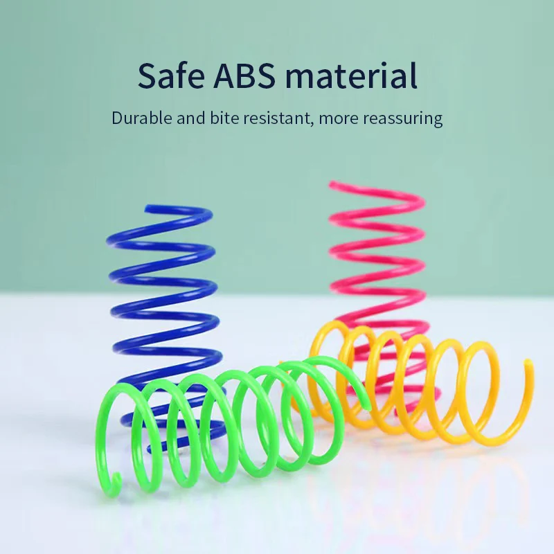 Seguro y resistente: nuestro juguete de primavera para gatos está hecho de plástico, muy elástico, ligero y suave, que se puede rebotar y torcer sin dañarlo, es más seguro cuando se mastica, no dañará a su gatito;Puedes lanzar este juguete de primavera en el suelo, dejar que tu gato persiga, rebote, rechace los dientes, deja que tu gato se divierta y le encantará.