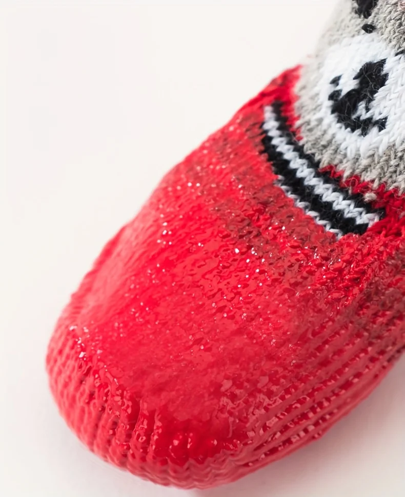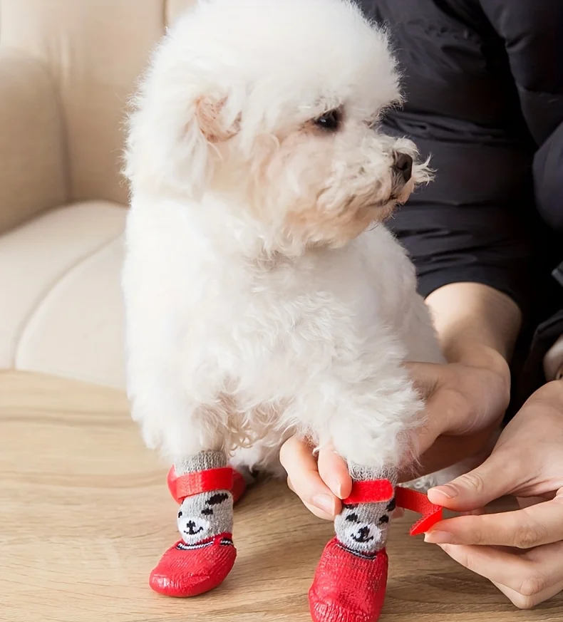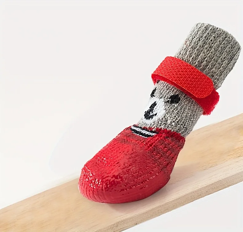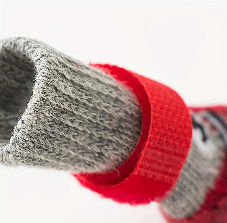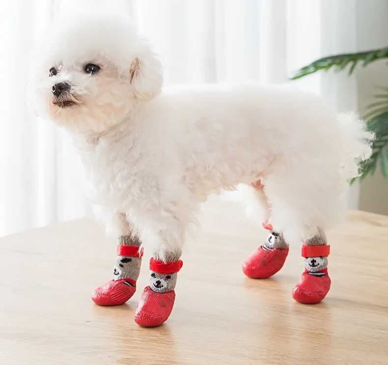 Aún es un cachorro maltés de 9 meses... El tamaño de la pata le queda bien, pero la parte del cuello es bastante ajustada. Absolutamente no se puede usar con una mano; tienes que estirar la parte del tobillo con ambas manos para que encaje. Es un poco ambiguo... El cachorro de pelo largo suelta un poco de pelo al caminar. Solo mirando la pata, el tamaño le queda bien... Es incómodo de usar. Sé que no se puede evitar. El producto en sí no está mal. Puedes considerarlo como guantes de piel de oveja con capa roja.