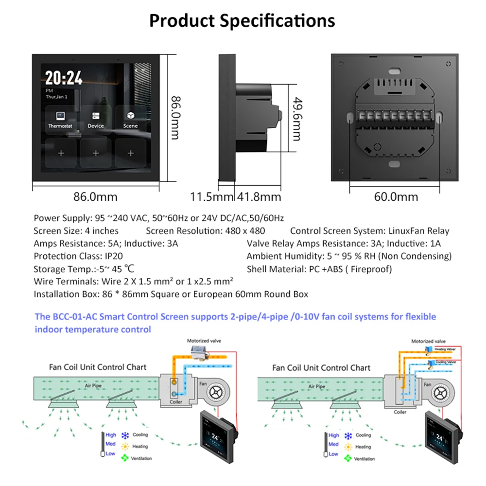 4-Zoll-Tuya Smart Center-Bedienfeld, Raumheizung, thermost, WiFi/Zigbee-Temperaturregler, Touchscreen-Steuerungsschalter