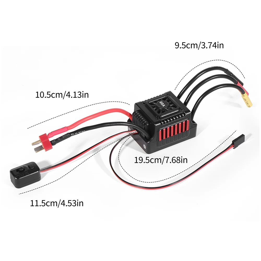 45A 60A RC ESC Impermeable Sensor Sin escobillas 2-3S 5.8VBrushless ESC con enchufe XT60/T para RC Cars Camión Programa Control de tarjeta