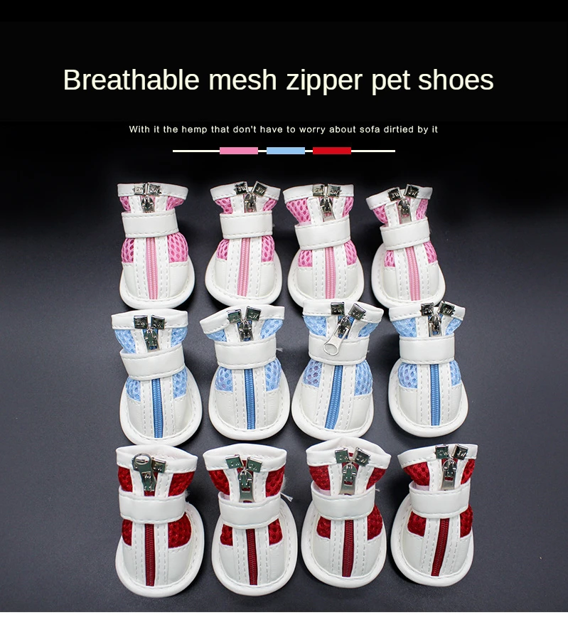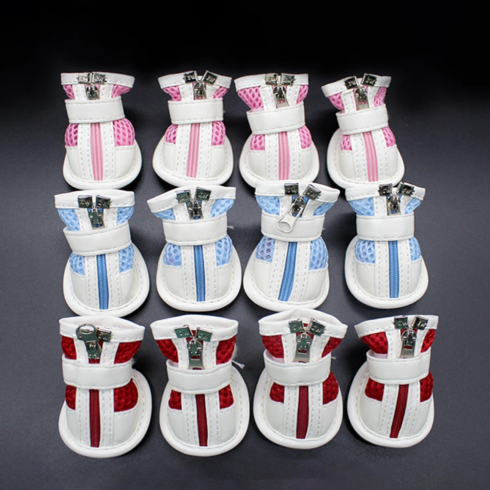 4 unids/set Casual Antideslizante zapatos para perros pequeños lindos zapatos para mascotas zapato Primavera Verano transpirable suave malla zapatilla Buty mengirim Psa Truelove