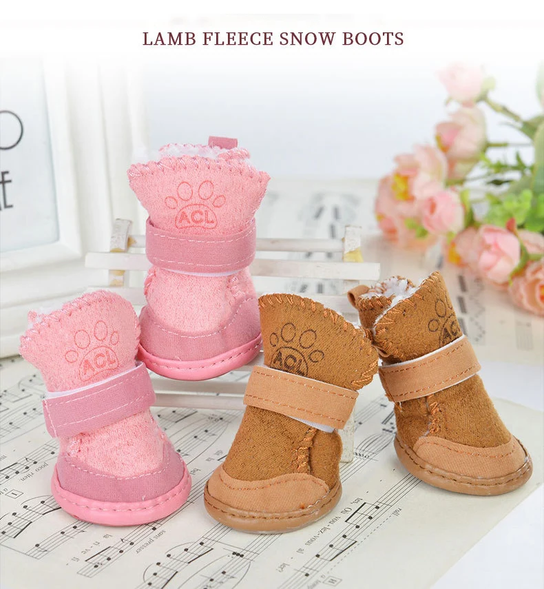 4Pcs/set Pet Dog Shoes Winter Warm Puppy Boots Lovely Pet Shoes for Small Medium Dogs Non-silp Cat Dog Sneakers Pet Supp