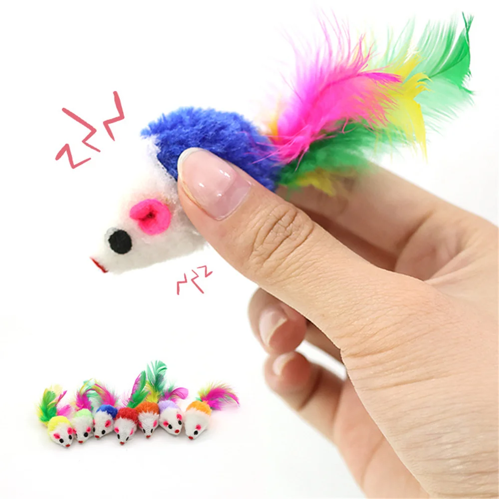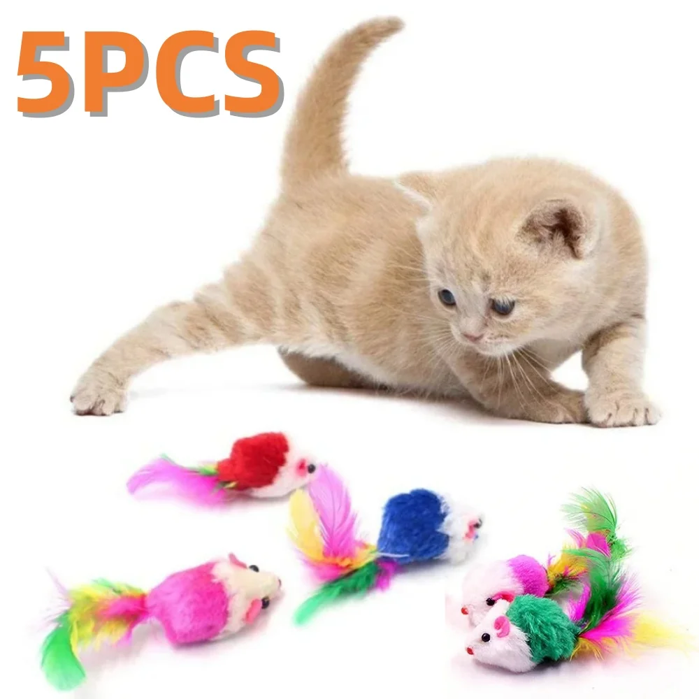 5 uds nuevos juguetes de peluche para gatos y ratones, juego de sonajero, juguete interactivo para mascotas para gatitos, juguetes surtidos con hierba gatera con cola de plumas coloridas