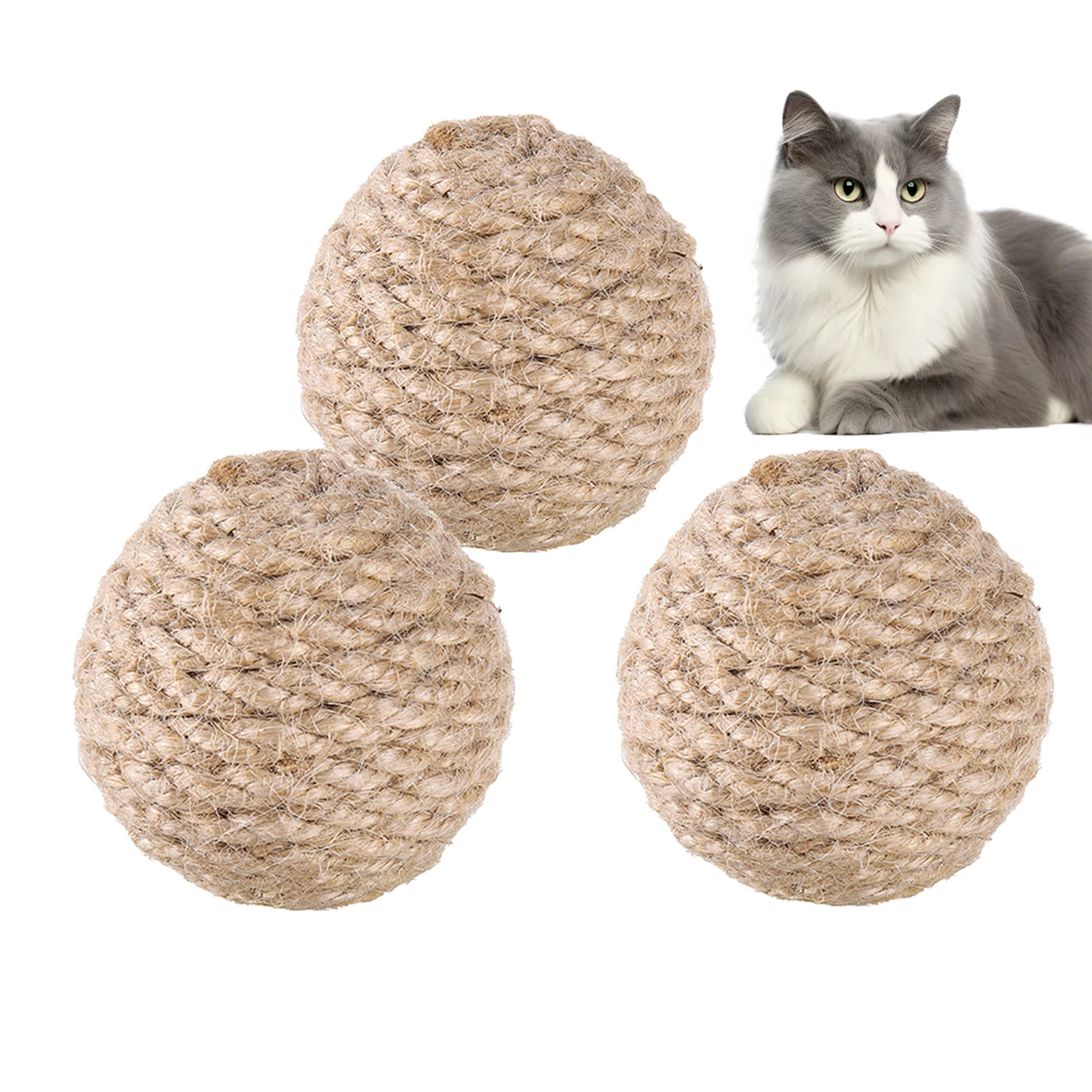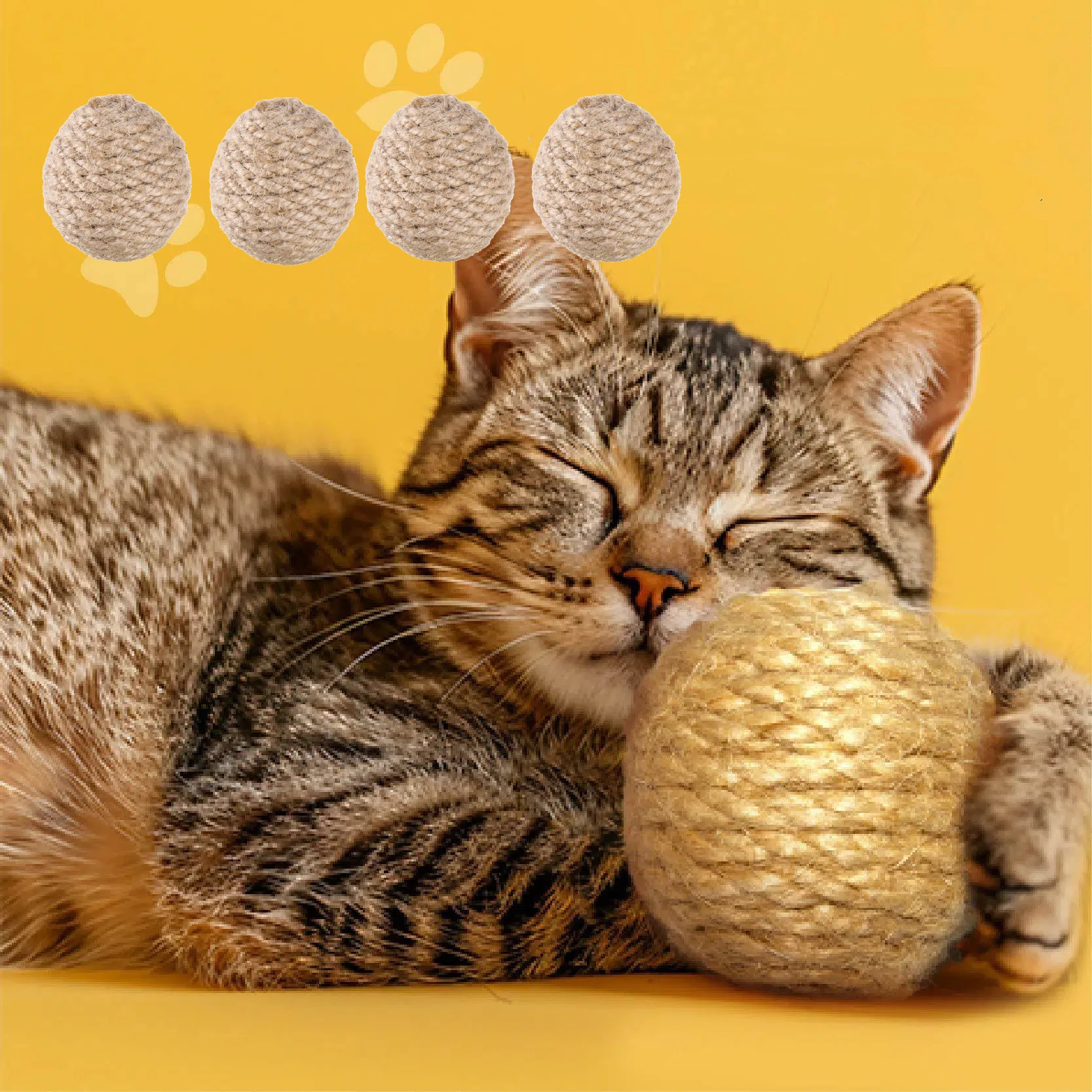 ➤ Cada juguete está hecho de material sisal natural.Es inofensivo para la salud de los gatos, sus gatos pueden usar esta bola de cuerda de sisal para entrenar sus garras y mantenerse saludables.