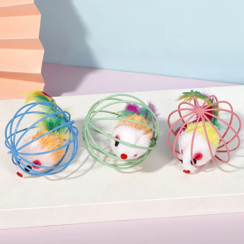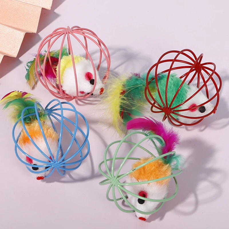 5 uds ratón para gato en jaula juguete interactivo bolas para gatos juguete Color aleatorio gatito juguetes creativos ratón para gato juguete suministros para mascotas