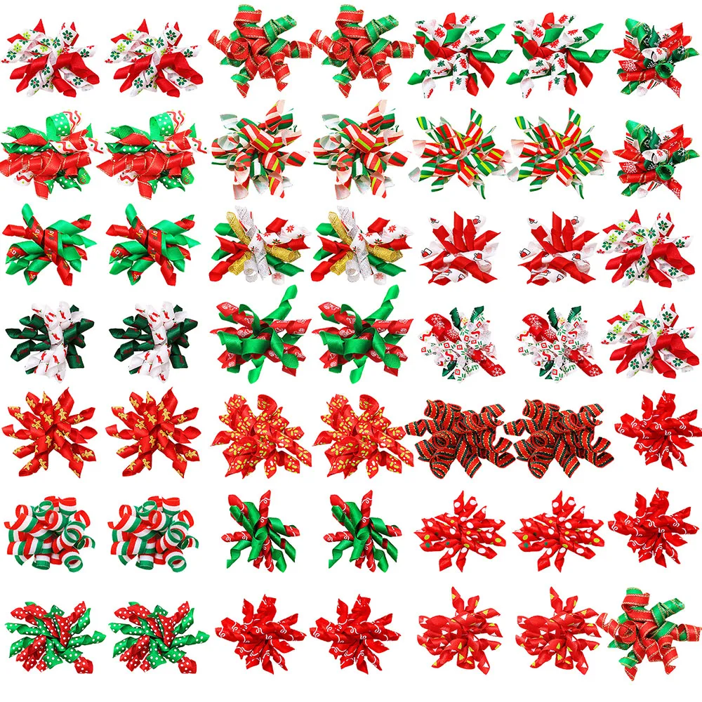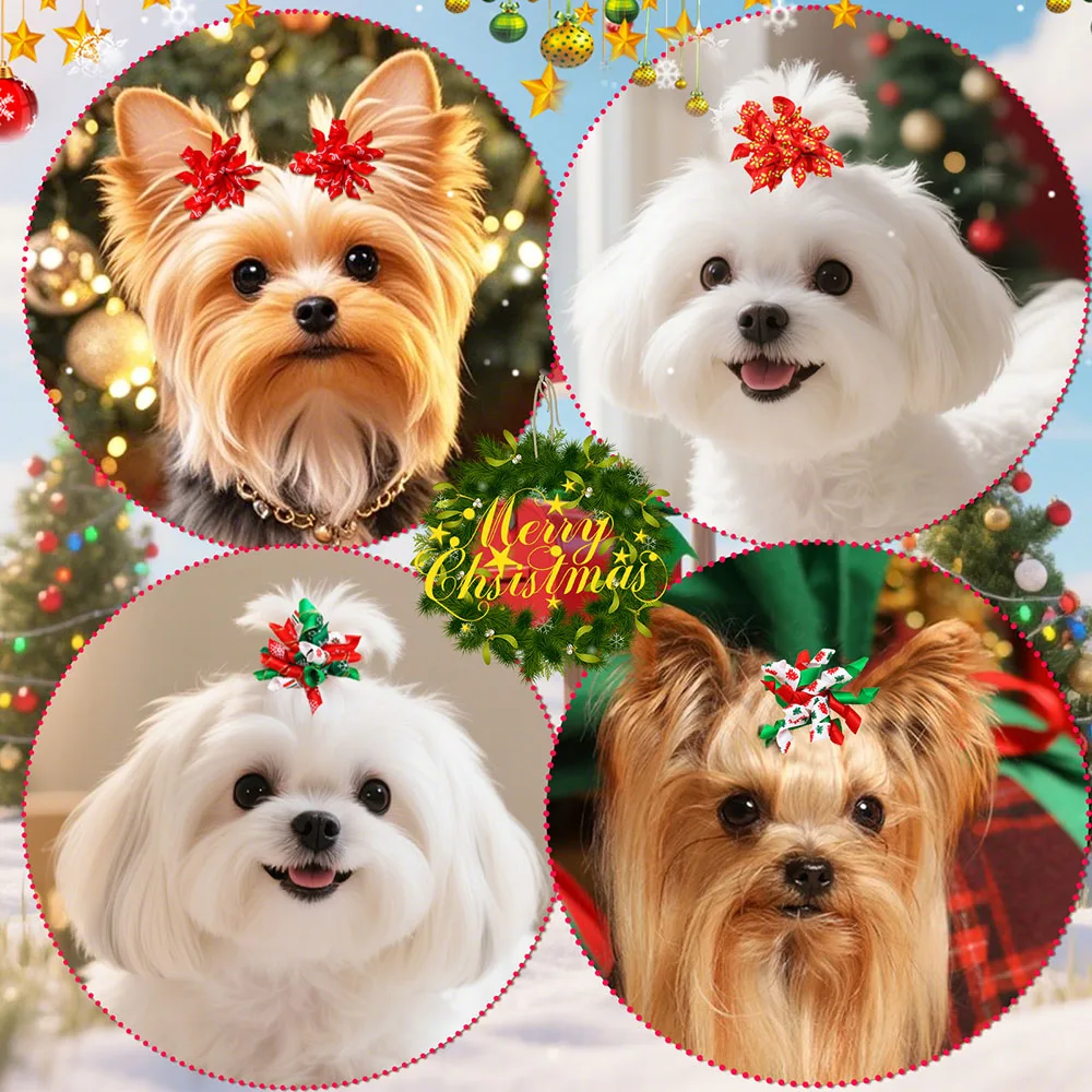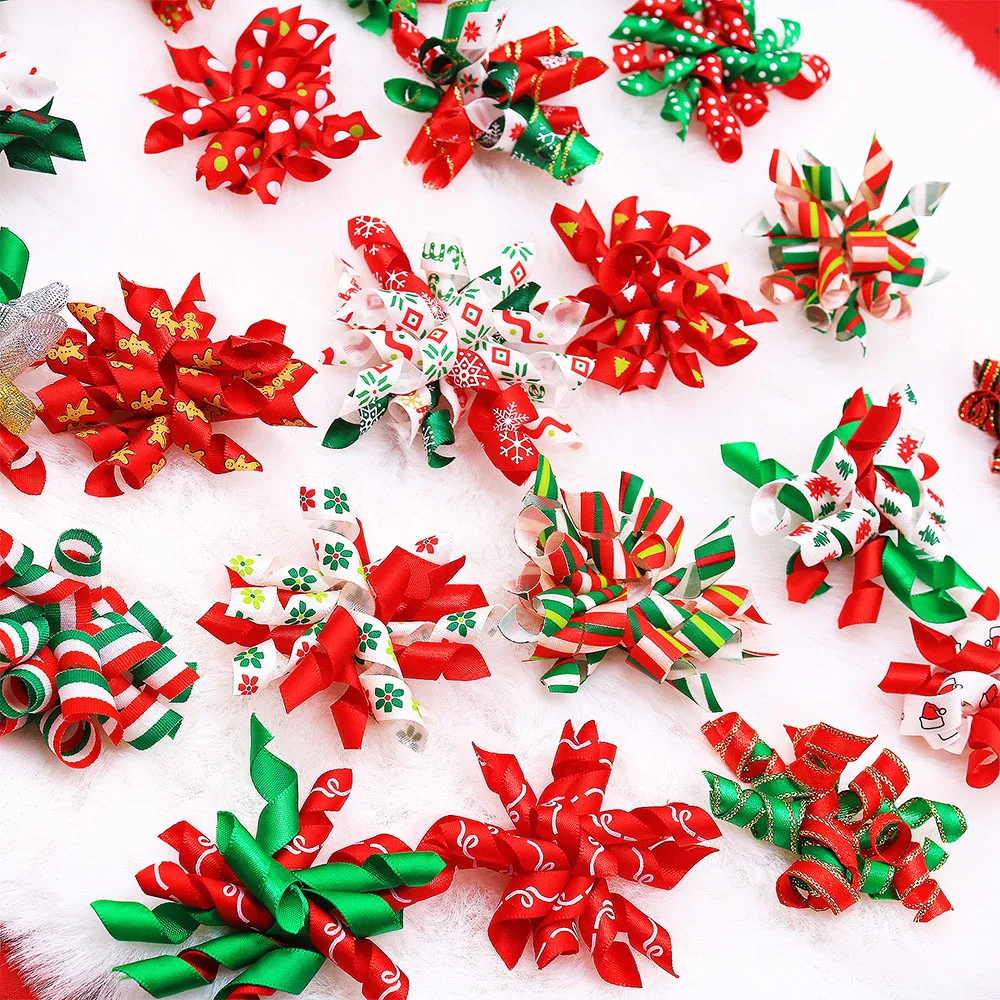 50/100 Uds. Lazos navideños para perros, cinta para perros, lazos para el pelo, diseños de curvas, accesorios para perros, suministros para festivales de Navidad para perros pequeños