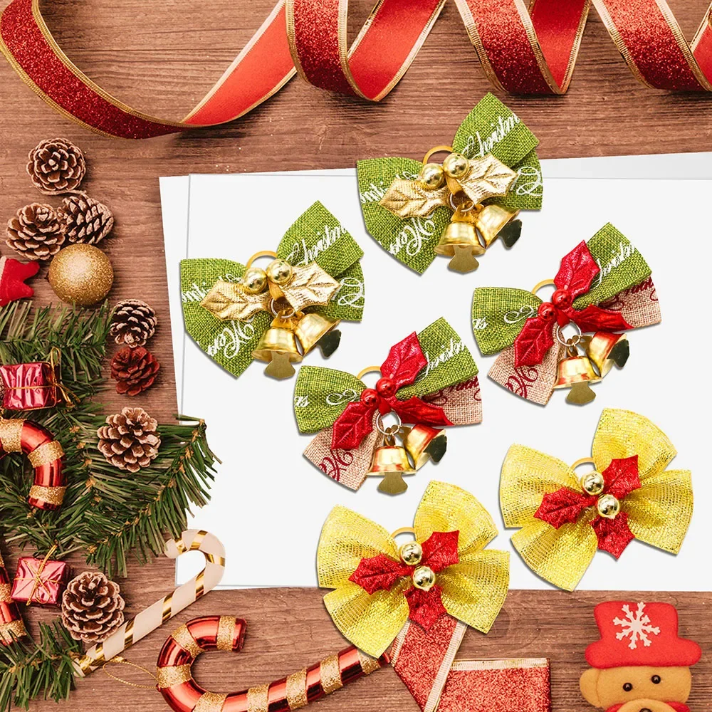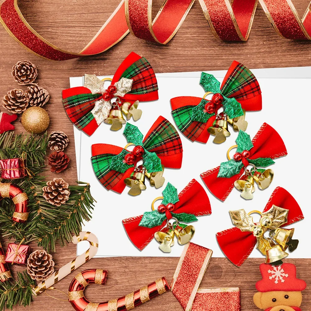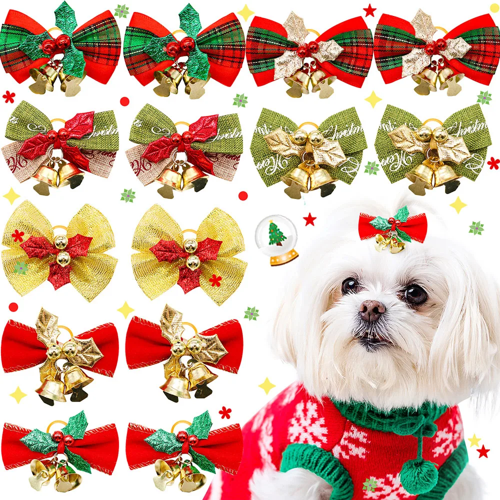 50/100pcs Christmas Dog Bows Small Dog Cat Hair Bows With Bell For DOgs Christmas Hair Accessories Dog Grooming Pet Accessories