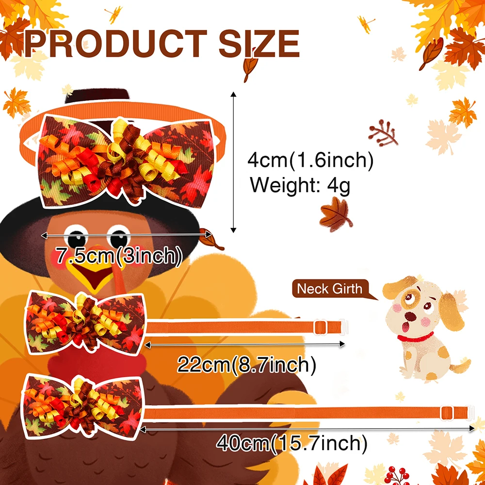 Artículo:50/100ps Pajarita para perro de Acción de Gracias Otoño Pajarita para perro mascota Collar para perros Productos de aseo para gatos Accesorios para perros de moda Supplis para mascotas