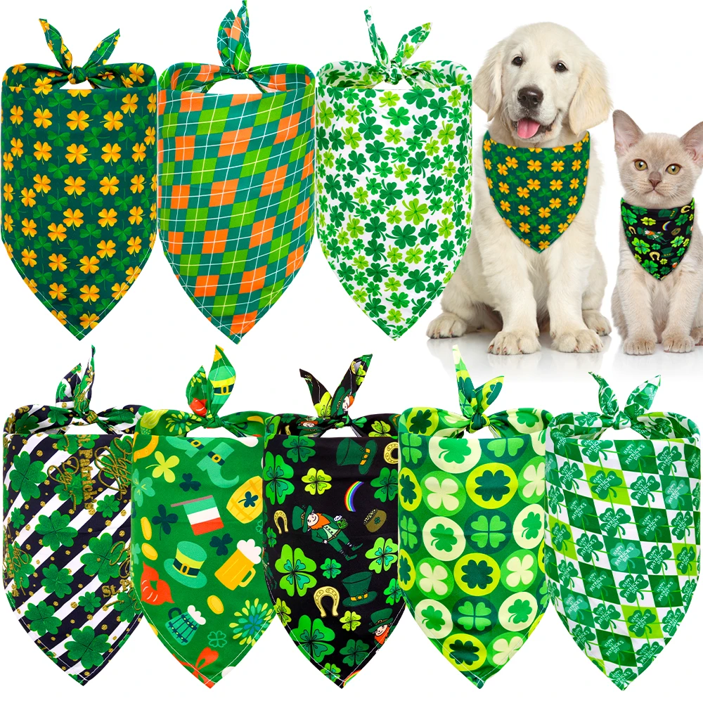50 Uds. Accesorios para mascotas del Día de San Patricio, Bandana para perros, pañuelos de poliéster para perros y gatos, bufanda para perros pequeños, gatos, cachorros, pañuelos, Baberos