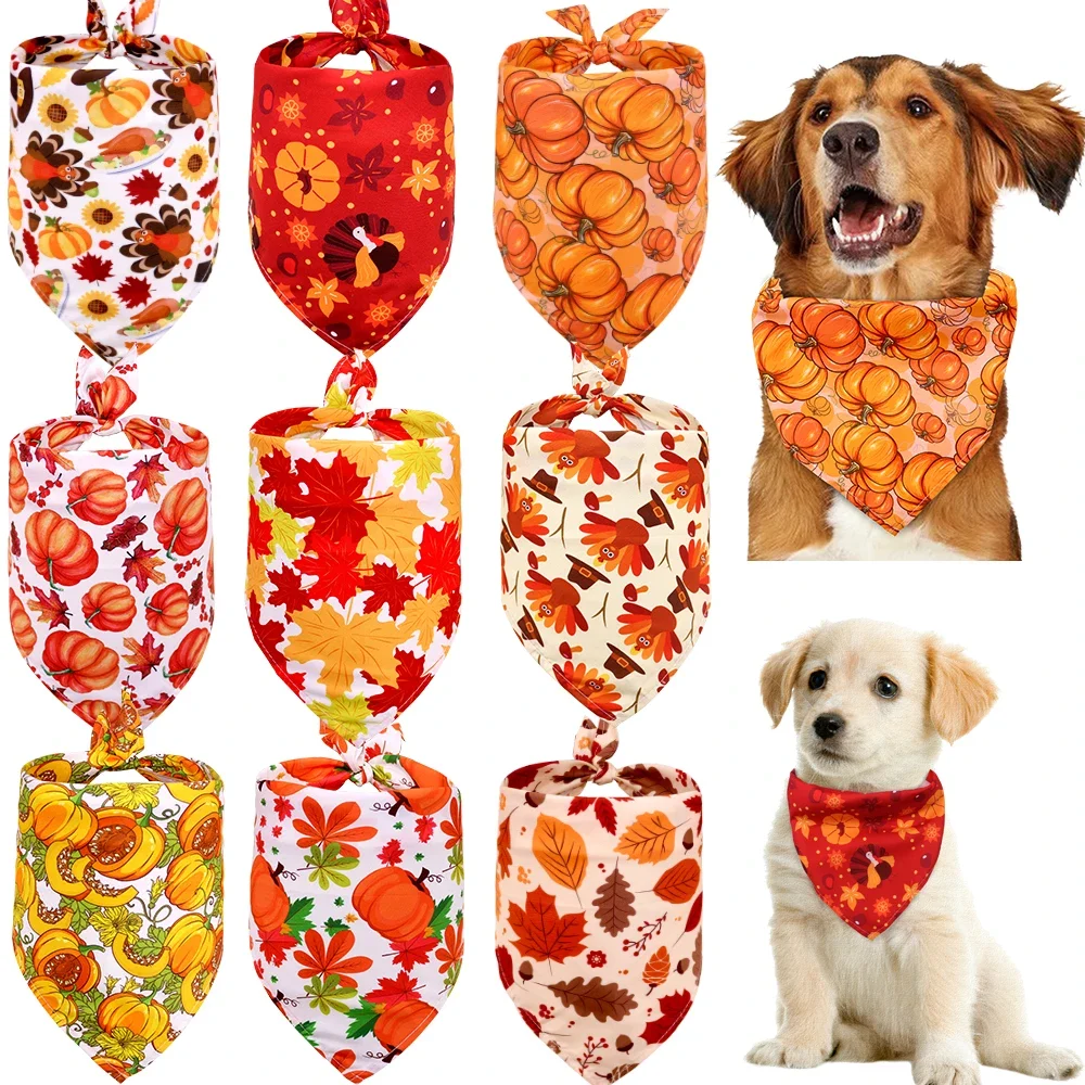 50 Uds. Bandana para perro, suministros para mascotas de Acción de Gracias, pañuelos para perros pequeños, gatos y cachorros, bufanda, accesorios para perros de otoño, Bandana para perros calabaza y pavo