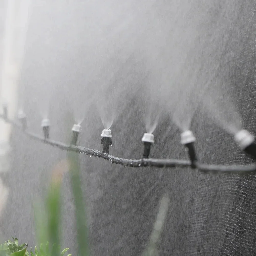 50 Uds. Boquilla de cabezales de aspersor de nebulización de jardín de riego de plástico con juntas en T para riego por nebulización