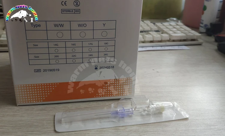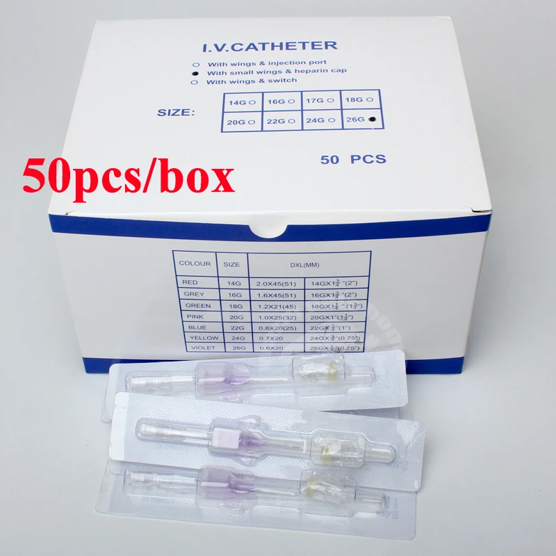 Catéter de animales de cánula veterinario, 50 Uds., con tapa heparina, 22G 24G 26G, Material veterinario desechable