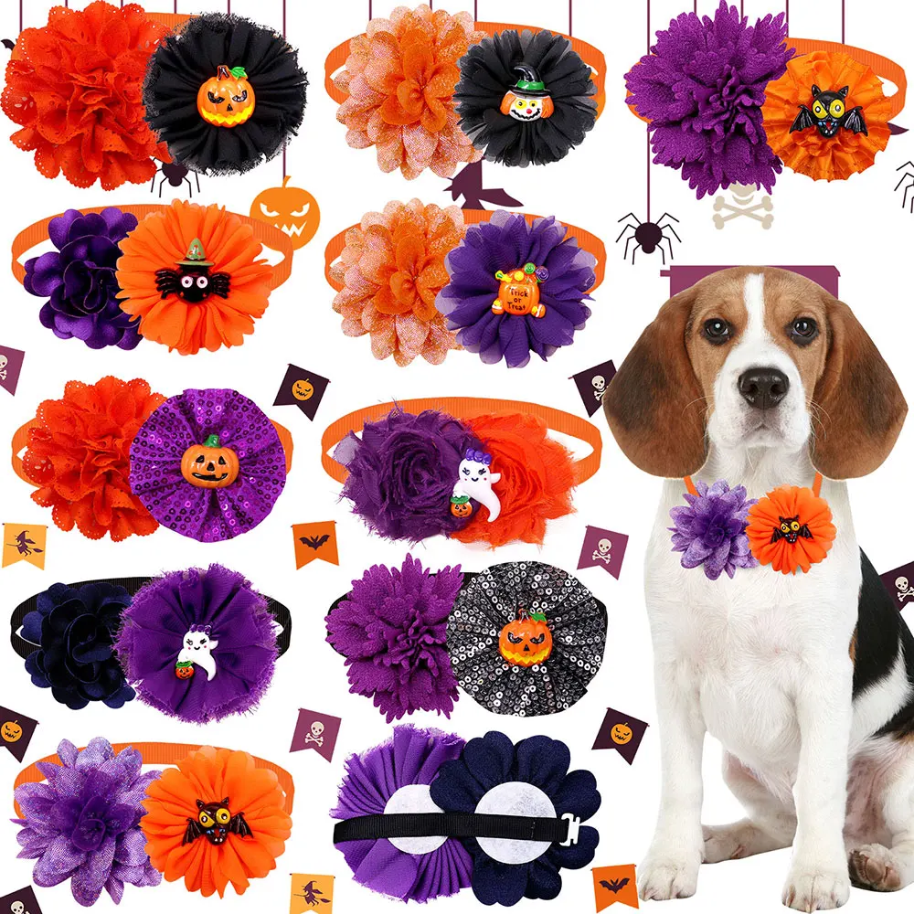 50 Uds. Pajarita para perro de Halloween, calabaza, fantasma, calavera, perro pequeño, pajarita para gato, Collar para perros, mascotas, suministros de aseo, accesorios para perros