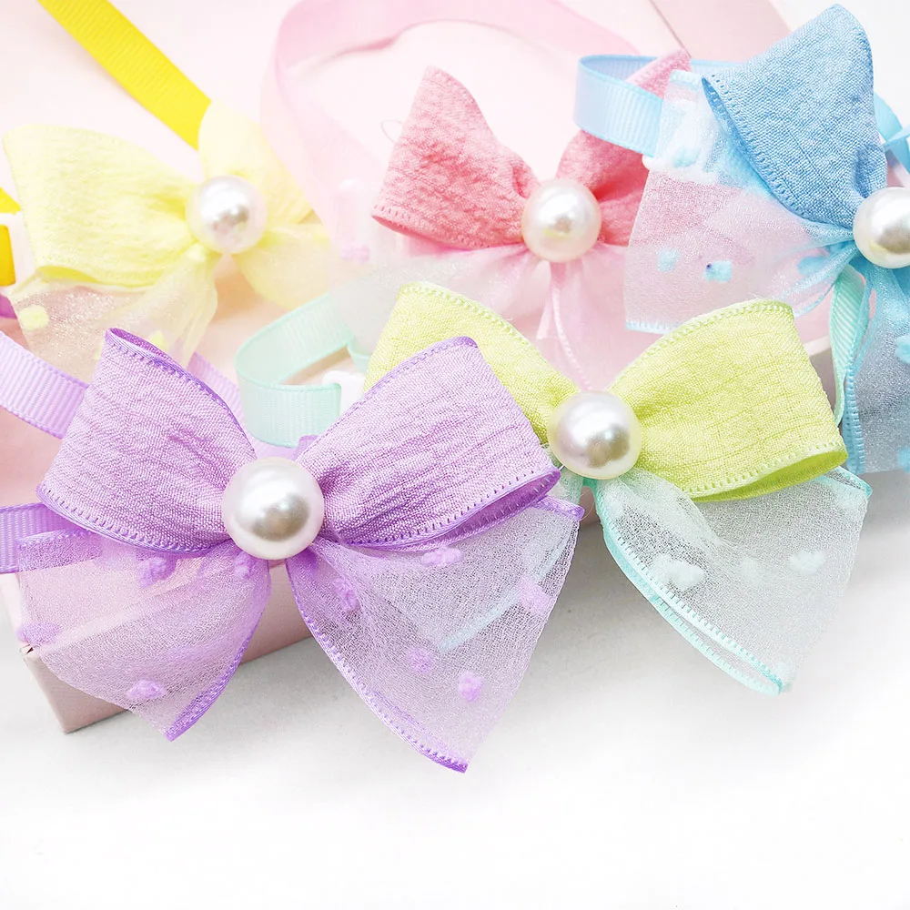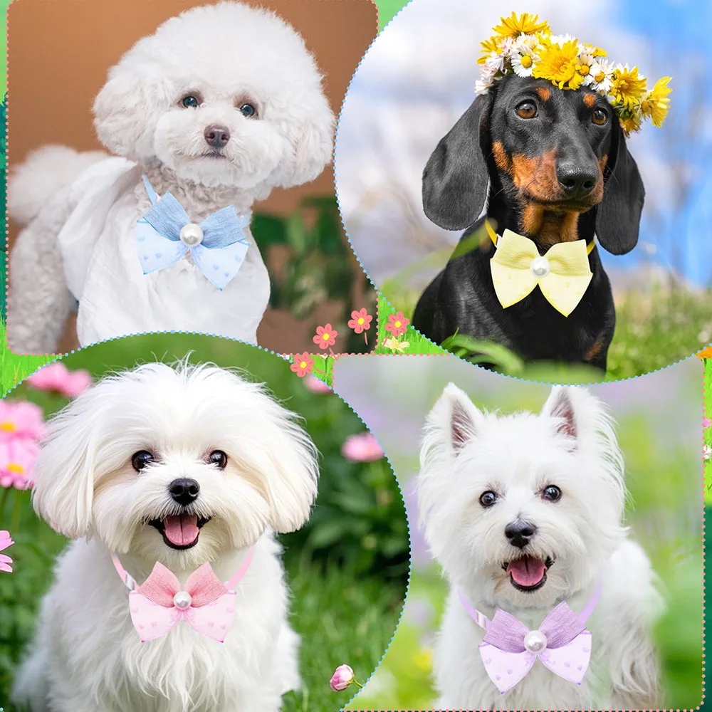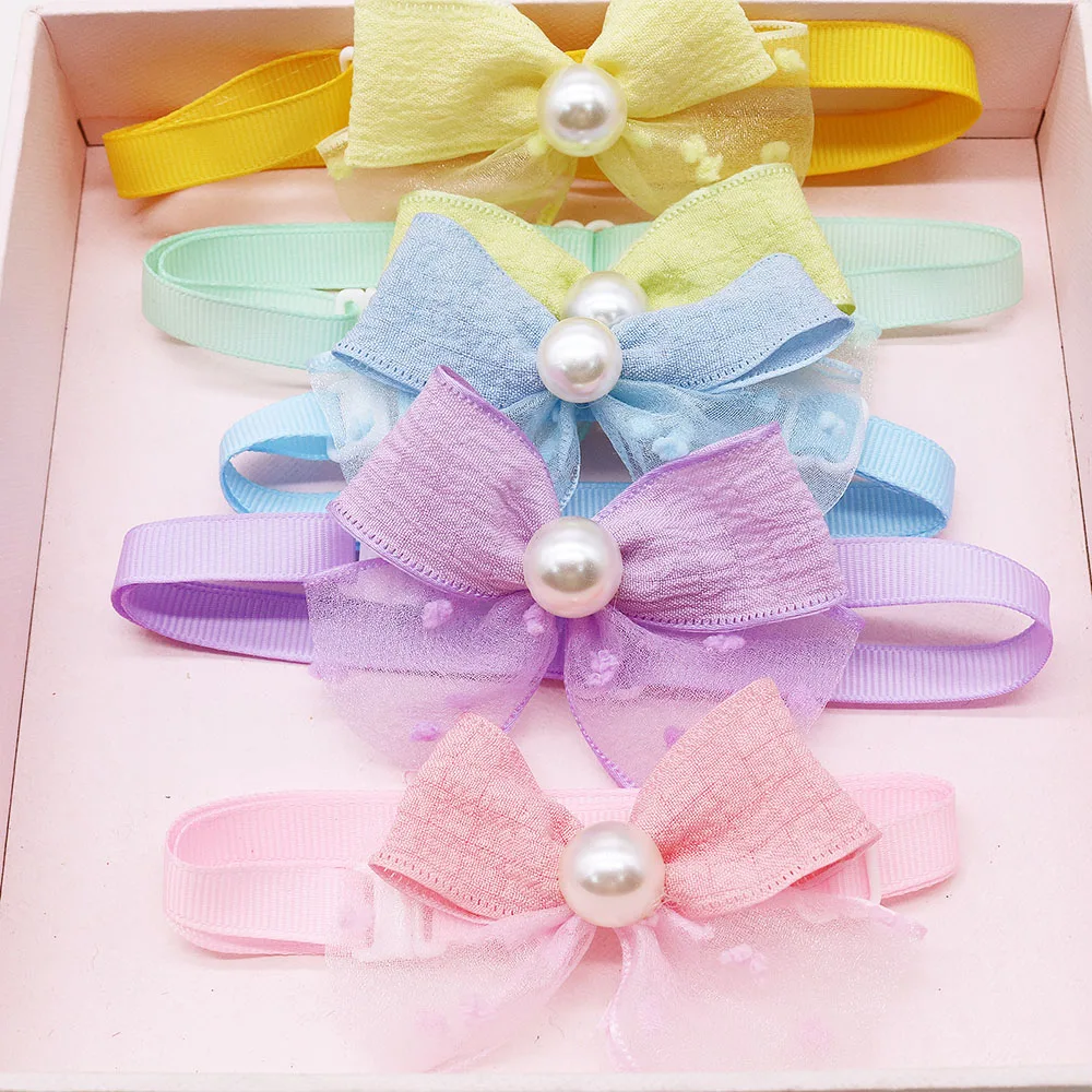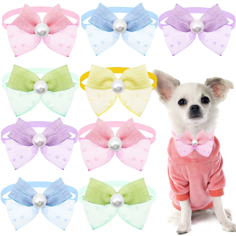 Artículo: 50 Uds. Collar de pajarita para perro mascota con perlas de encaje a la moda para perros, mascotas, pajaritas, corbatas, accesorios de aseo para mascotas de primavera para perros pequeños