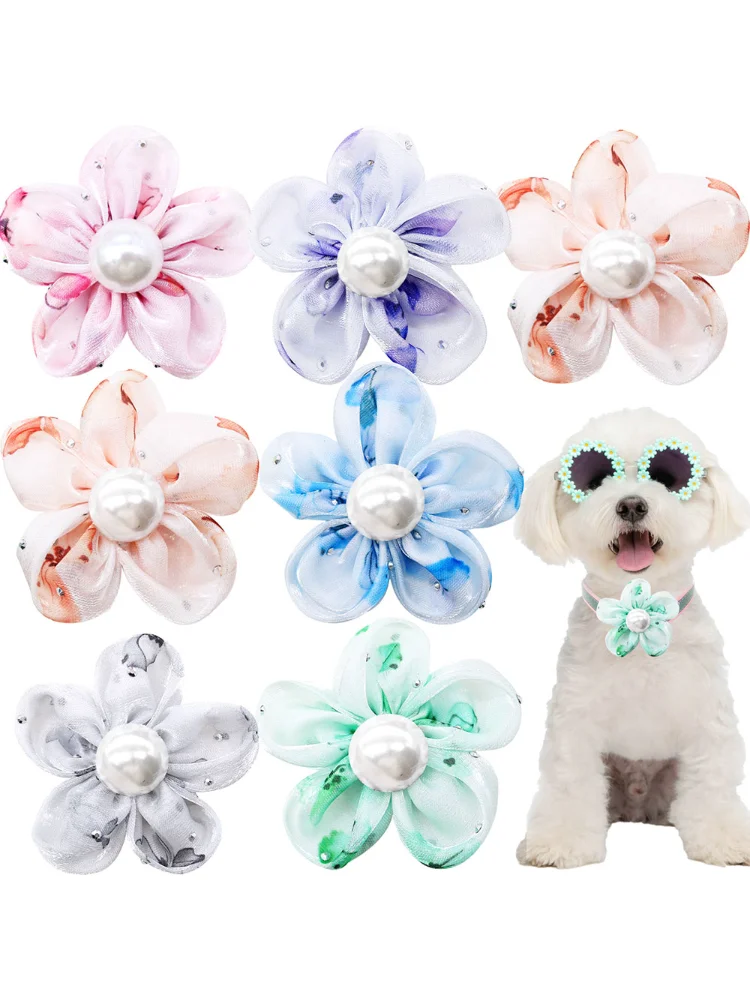 50 Uds. Pajaritas de encaje con perlas para perro, pajaritas de primavera extraíbles para perro pequeño y gato, accesorios para Collar, productos de aseo para perros a la moda