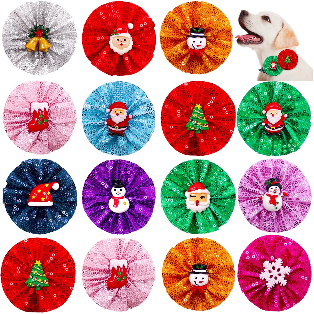 50 Uds. Suministros navideños para mascotas, Collar para perros, accesorios deslizantes, pajarita para perros, Collar, accesorios de aseo para perros pequeños