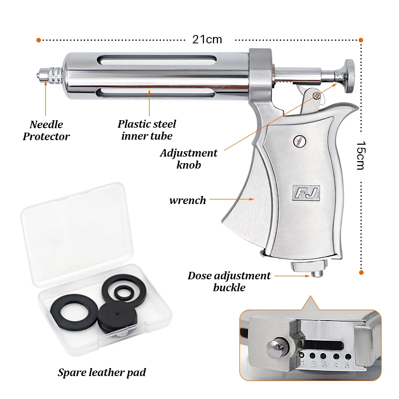 50ml Livestock Semi-Automatic Continuous Syringe Veterinary Equipment for Horse Sheep Cattle Pig Adjustable Vaccine Injector
