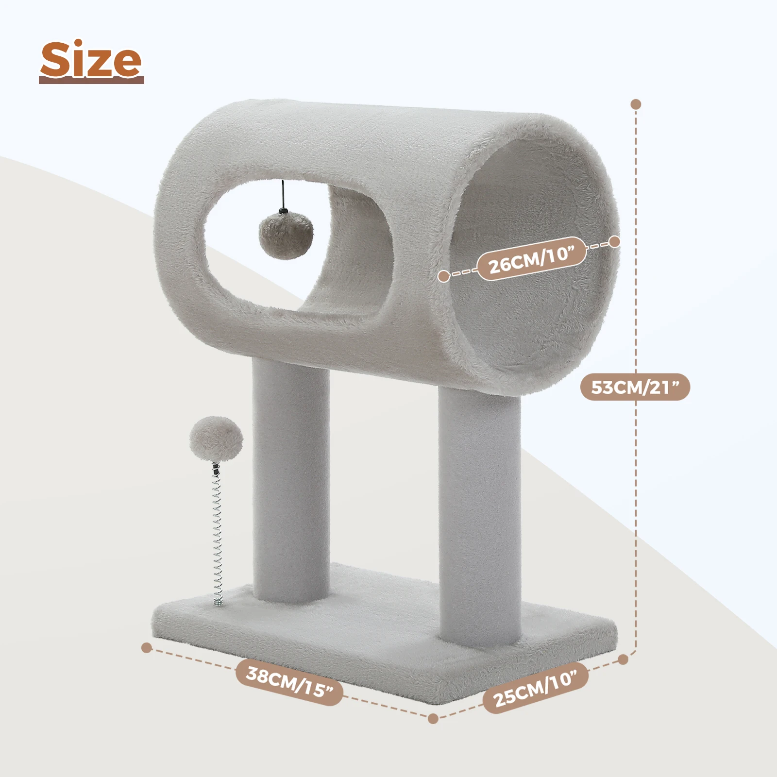 Árbol para gatos de 53 cm con túnel y bola de juguete colgante y bola de resorte para gatitos, decoración interior, muebles adecuados para 1-2 gatos