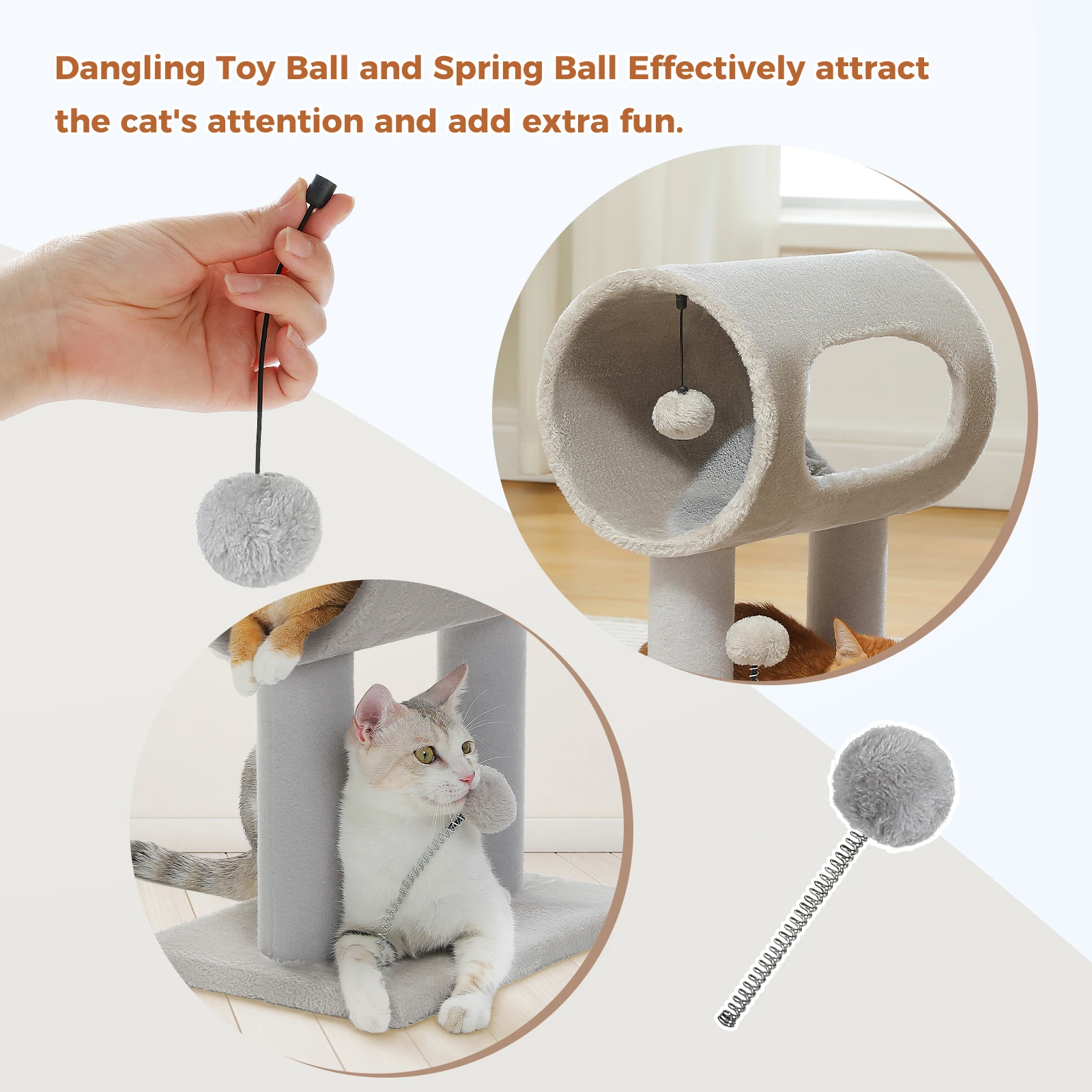Características interactivas: Equipado con un túnel y bolas de juguete colgantes, este árbol para gatos convierte el tiempo de juego en una experiencia atractiva y divertida para sus gatitos.