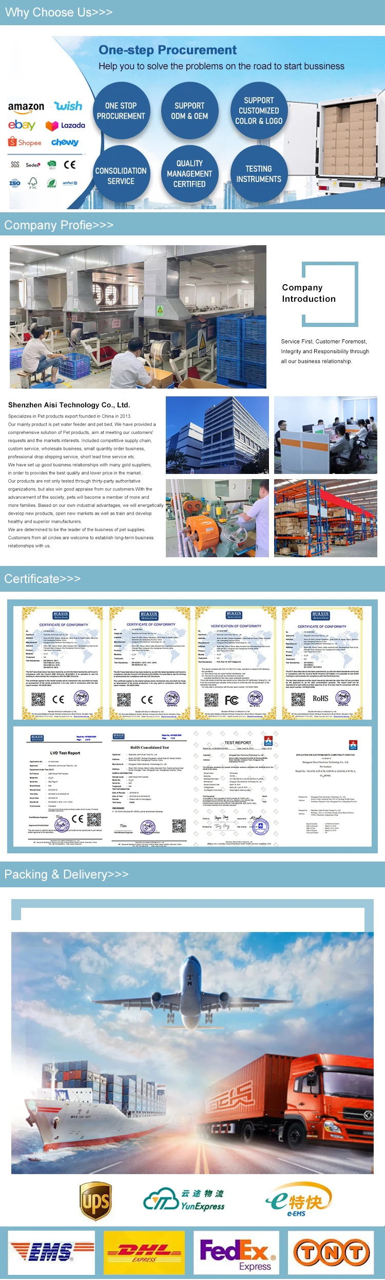 ----We are Integrated Industry and Trade Company,specializes in Pet products export founded in China in 2013. We have provided a comprehensive solution of Pet products, aim at meeting our customers' requests and the markets interests.