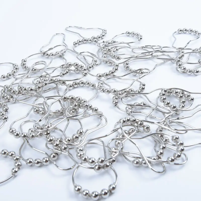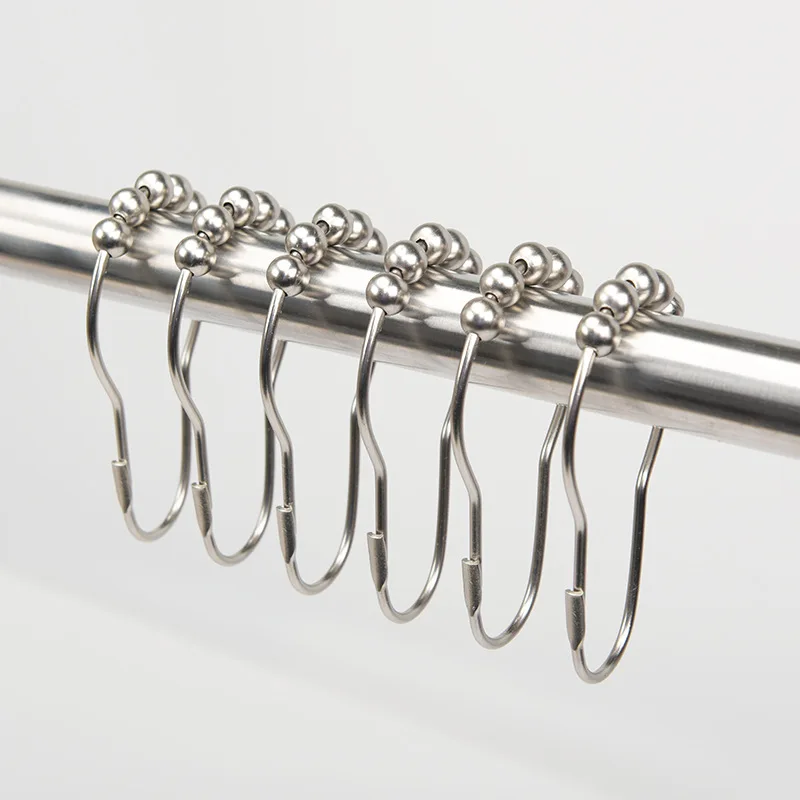 6 uds/12 Uds anillos para cortina de ducha ganchos ganchos para cortina de acero inoxidable bola de rodillo para cortina de baño 5 rodillos bola de níquel satinado pulido