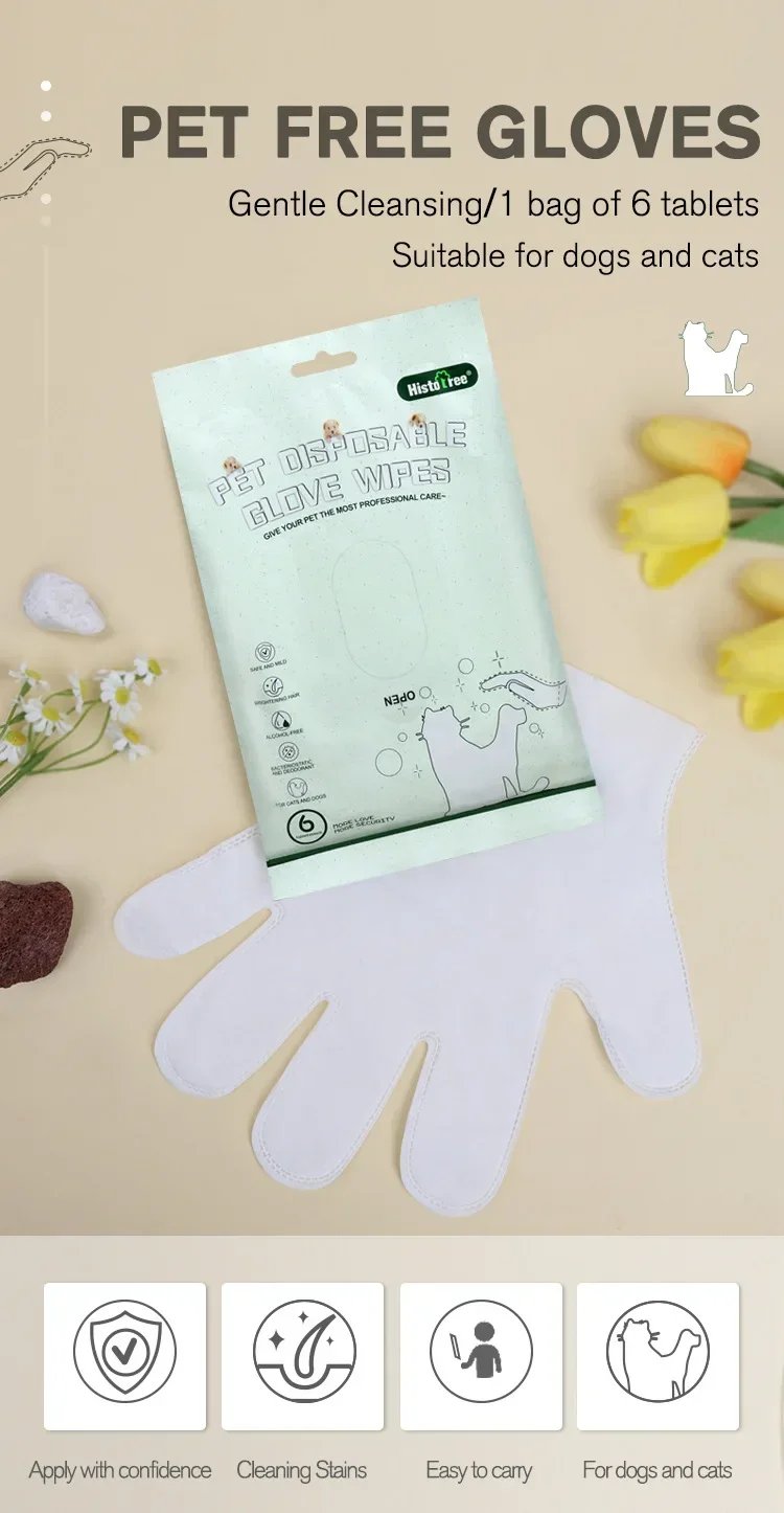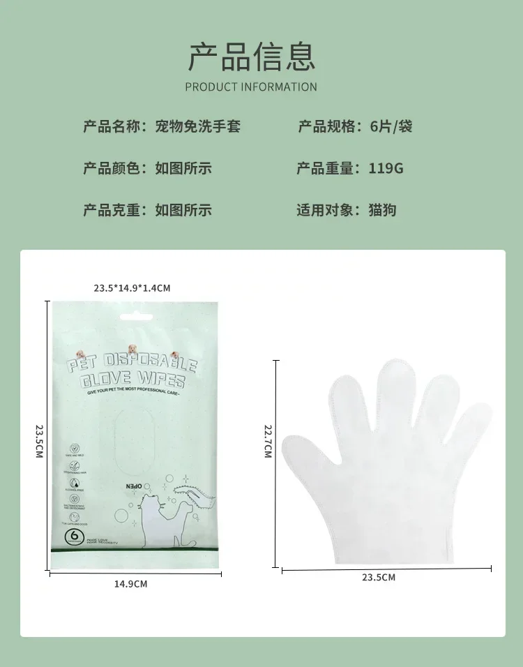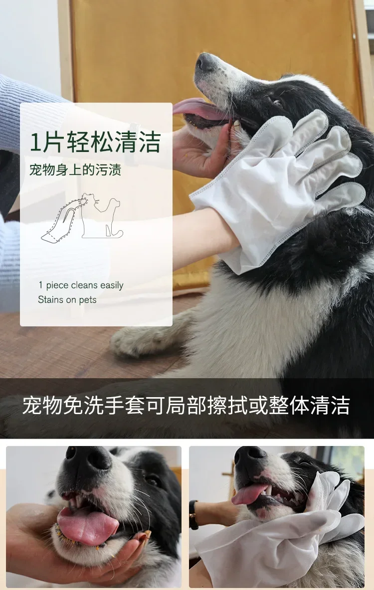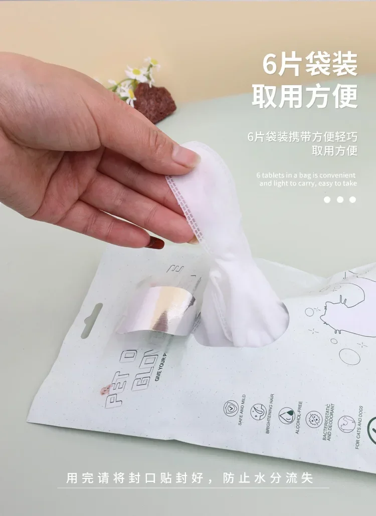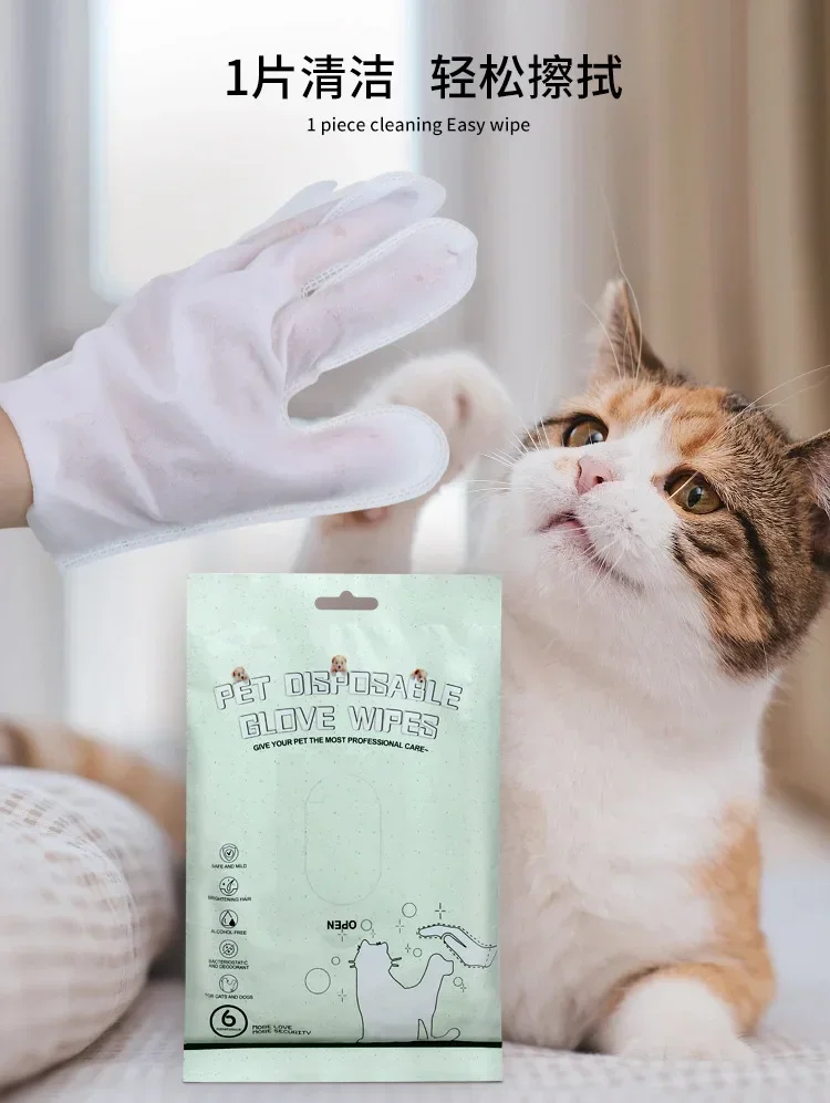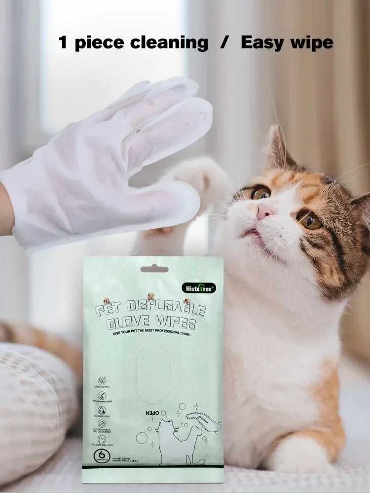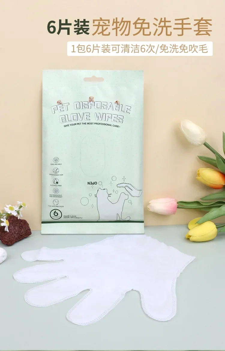 6 uds. De guantes desechables para perros y gatos, toallas sin lavado para mascotas, guantes de lavado sin enjuague, toallas desodorizantes para limpieza en seco, toallas húmedas