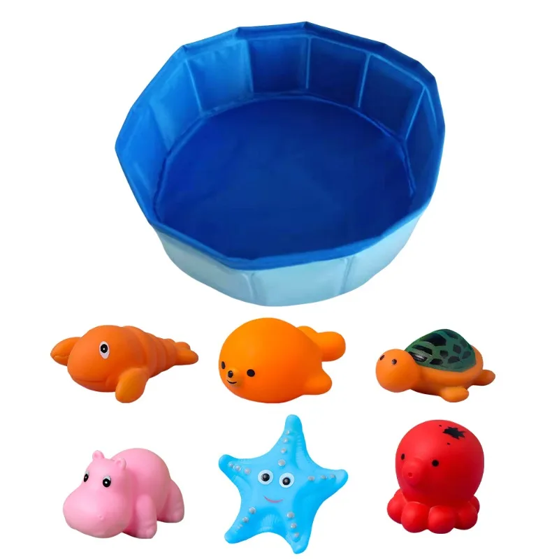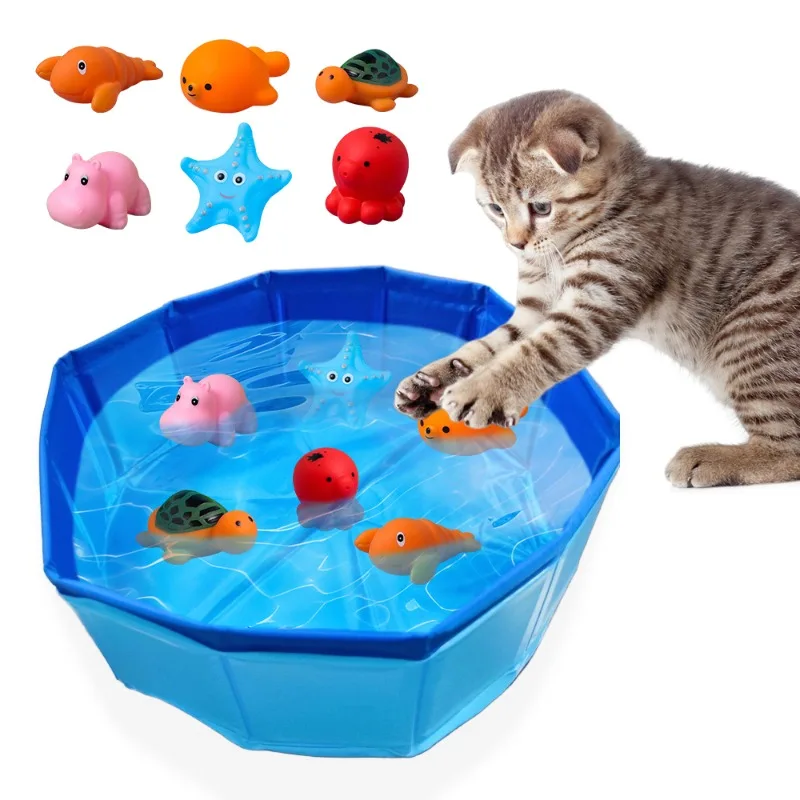 7 unid/set de lavabo plegable para jugar en el agua para gatos + juguete de pez Artificial, piscina de baño para mascotas para interiores, juego de entretenimiento interactivo para gatos pequeños