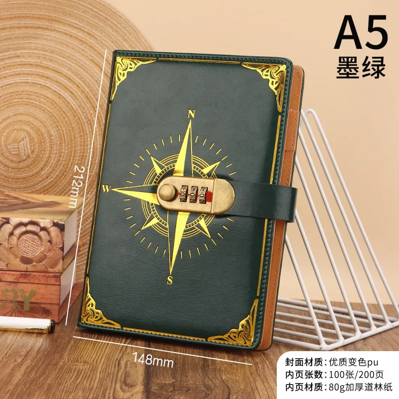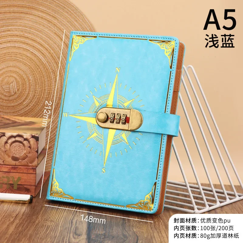 A5 creativo viajero brújula libro de contabilidad de mano estudiante Bloc de notas papelería Retro libro de contraseña
