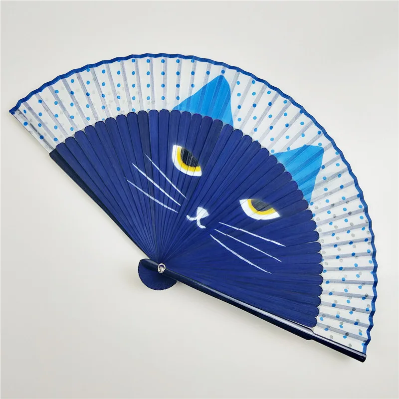 1 * ventilador de mano de seda plegable con diseño de gato de dibujos animados para mujer (negro)