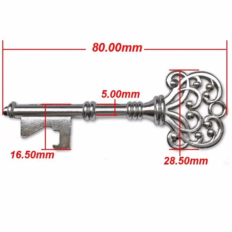 Los abridores de botellas para llaves están hechos de aleación de metal y miden 8 x 2,85 cm / 3,14" x 1,1".Cada llave está bien hecha, única y hermosa.