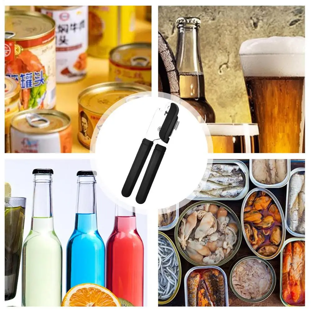 1.Widely Used: The hand held can opener opens cans and bottles with ease, combining the functionality of a bottle opener and can opener into 1 practical solution