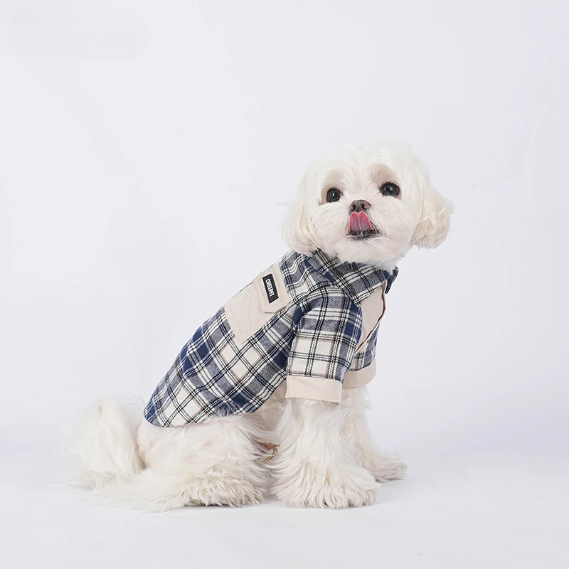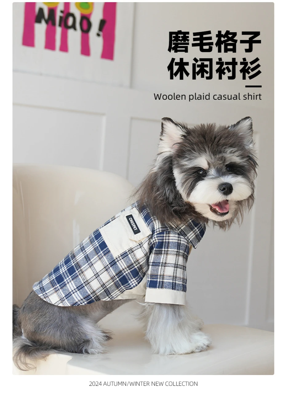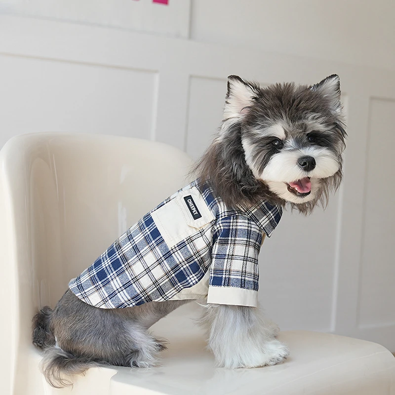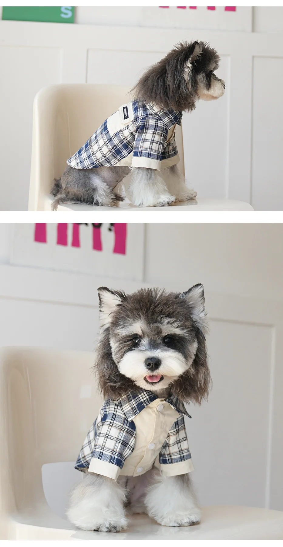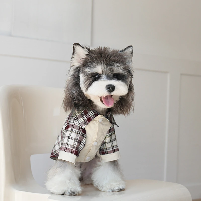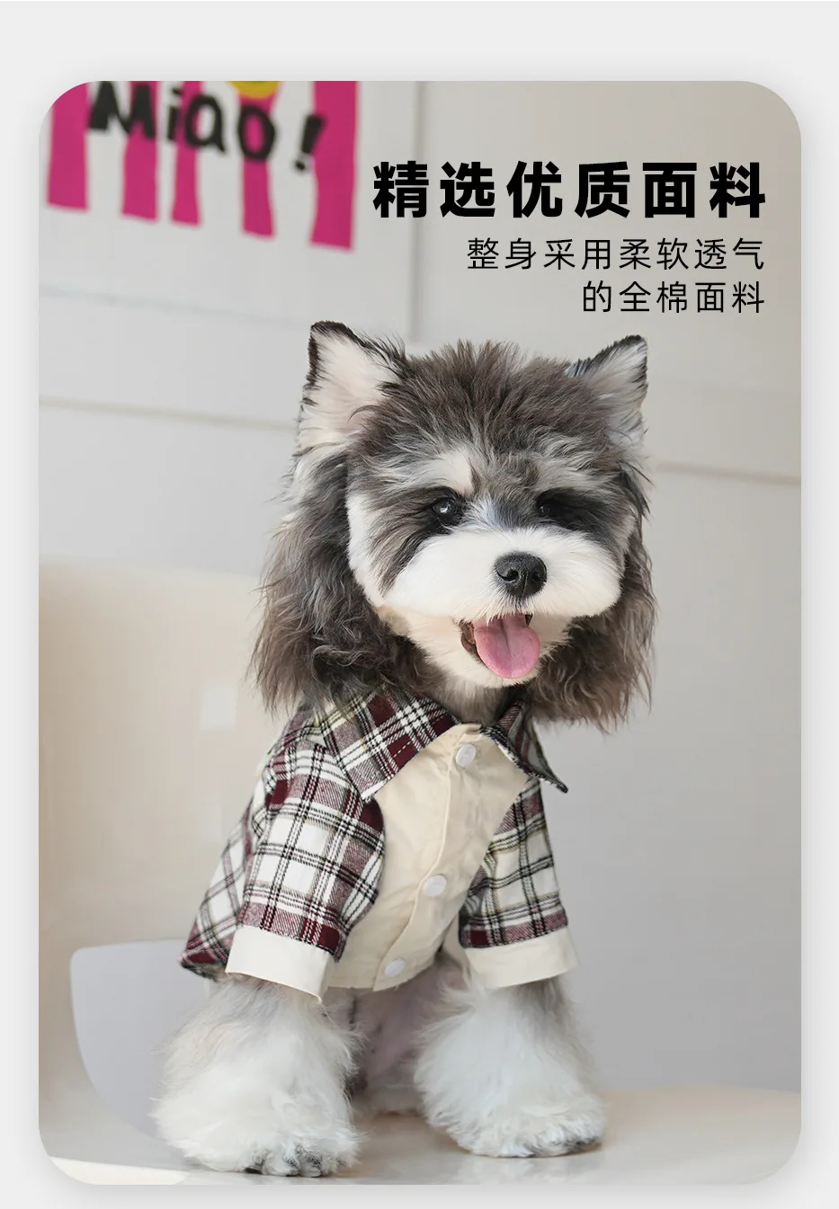 Abrigo a cuadros de dos patas para mascotas, camisa de Color, cuello bloqueado, antipelo, oso Schnauzer, cachorro, abrigo para caminar, Otoño e Invierno