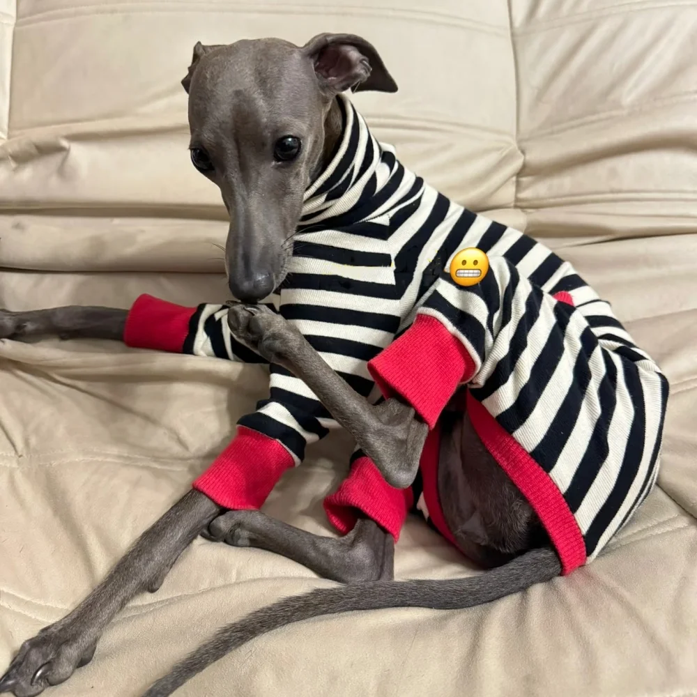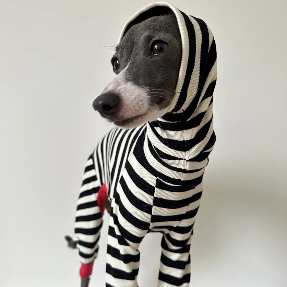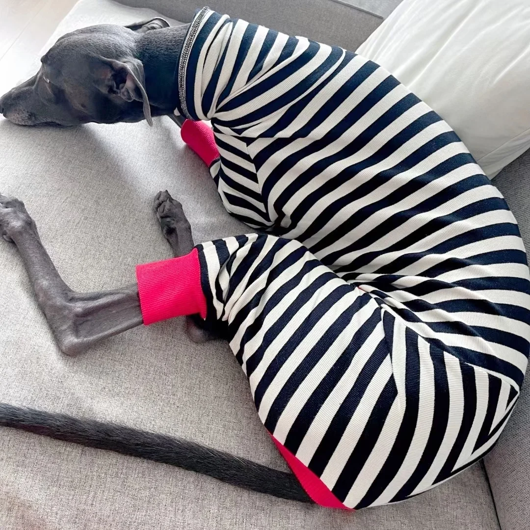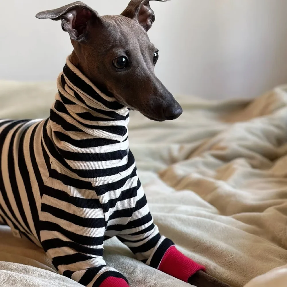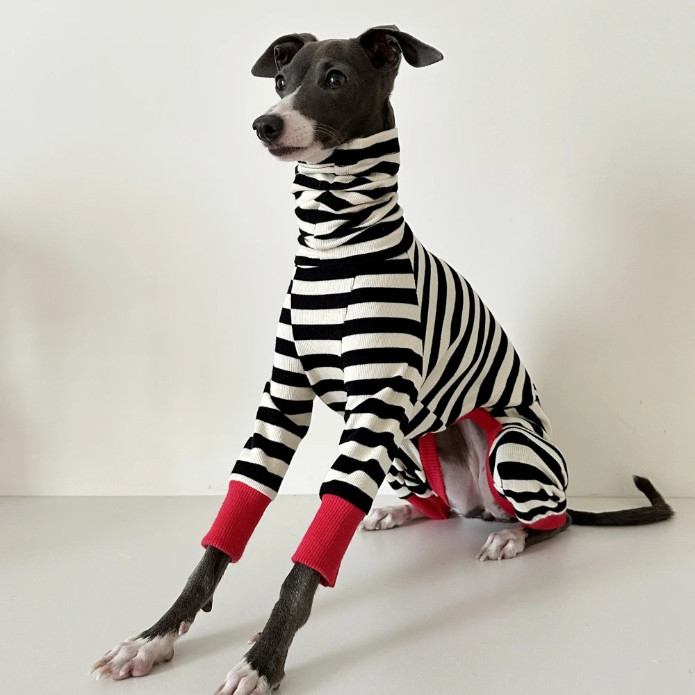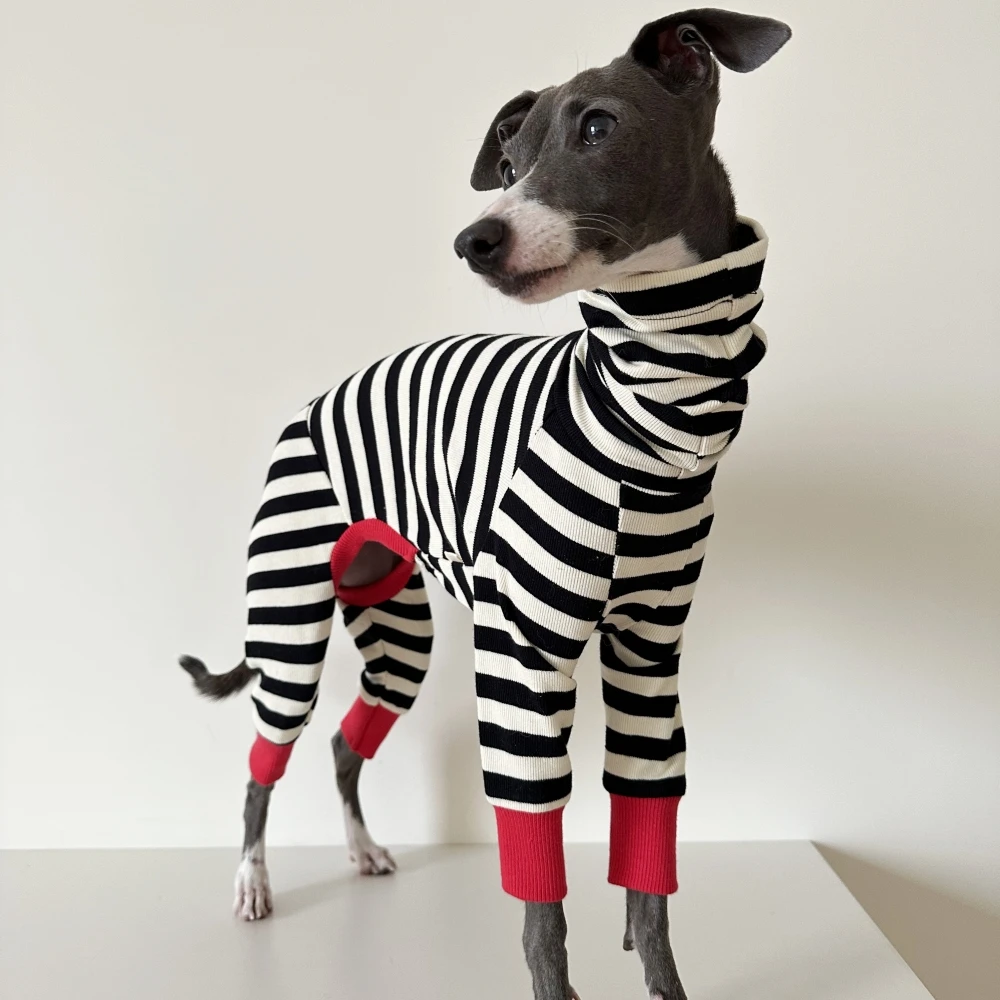 Abrigo de algodón de 4 patas para perros galgos ropa de descanso primavera otoño Whippet perro sudadera a rayas negras Bellington camisa de cuello alto