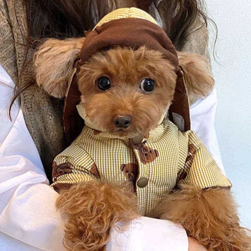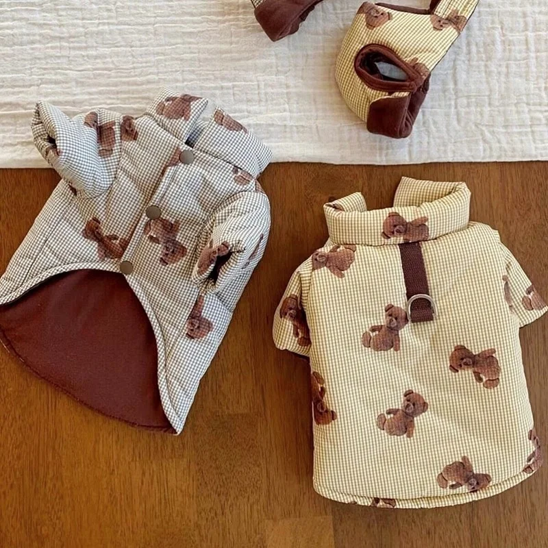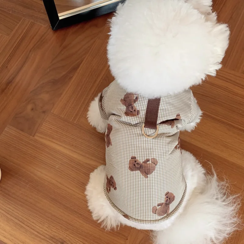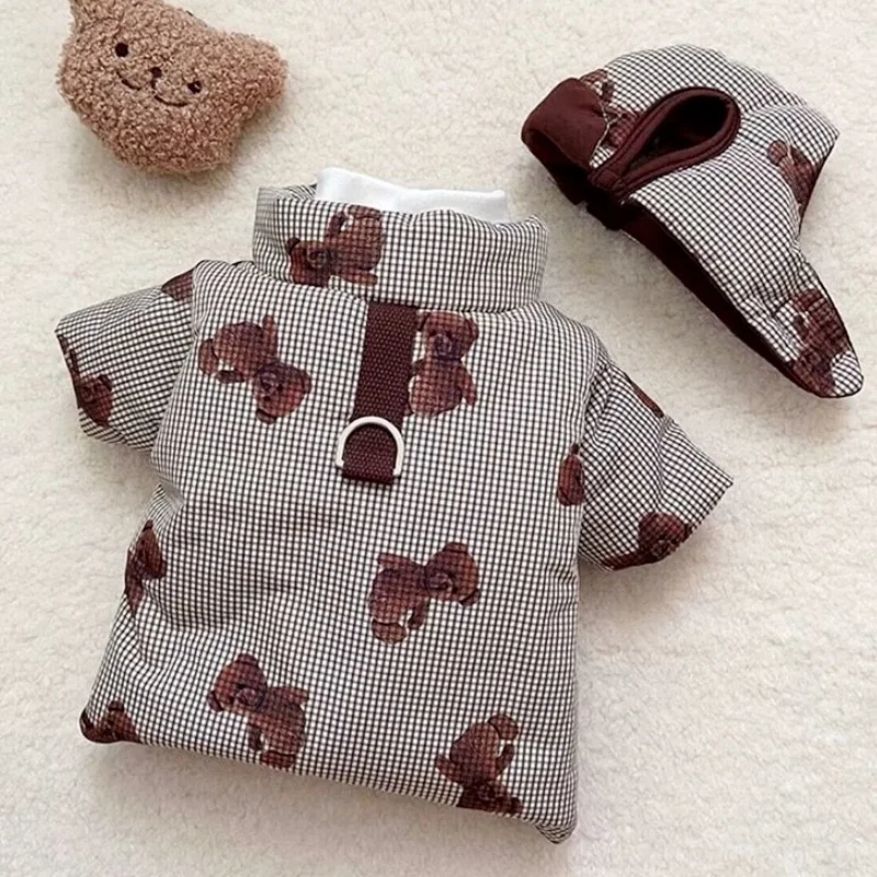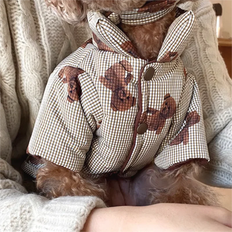 Abrigo de algodón a cuadros para perro, ropa cálida de invierno para perro con sombrero, nueva chaqueta gruesa, abrigo con estampado de oso, chaqueta de plumón de gato, ropa para mascotas