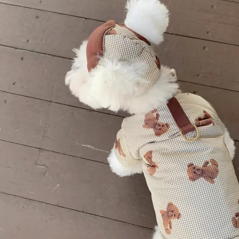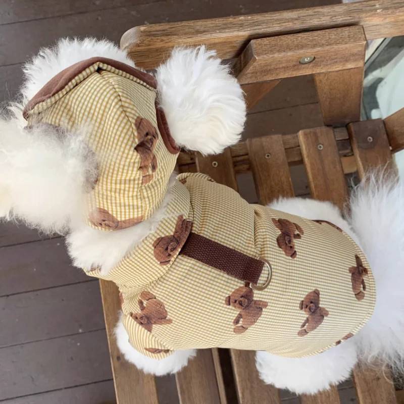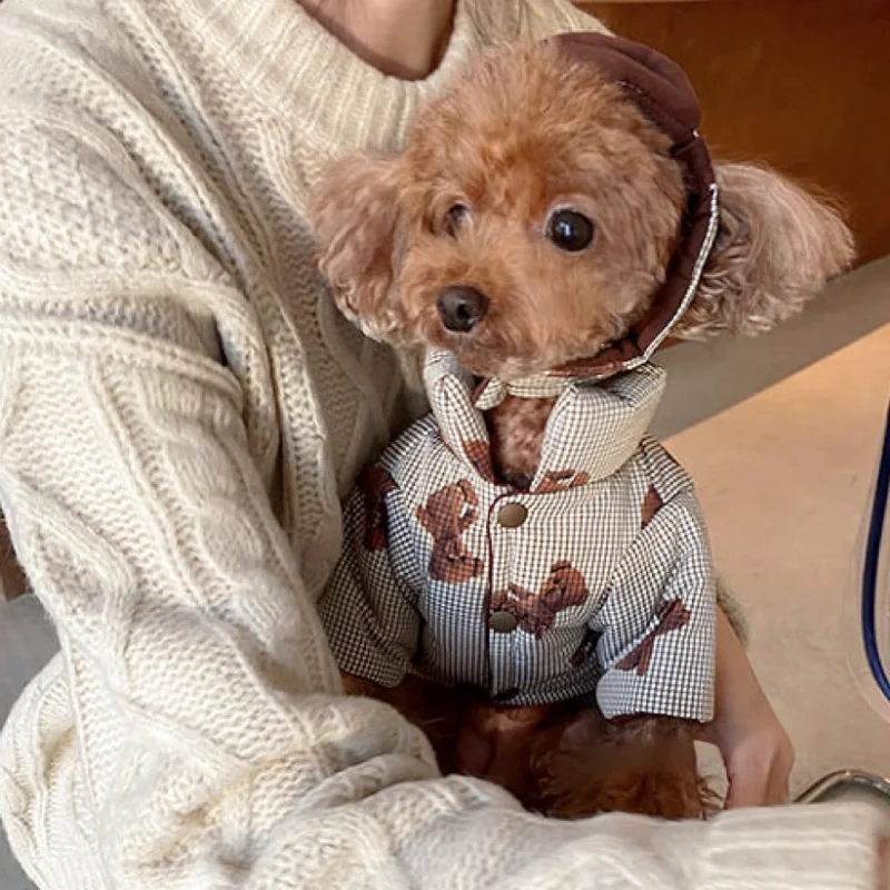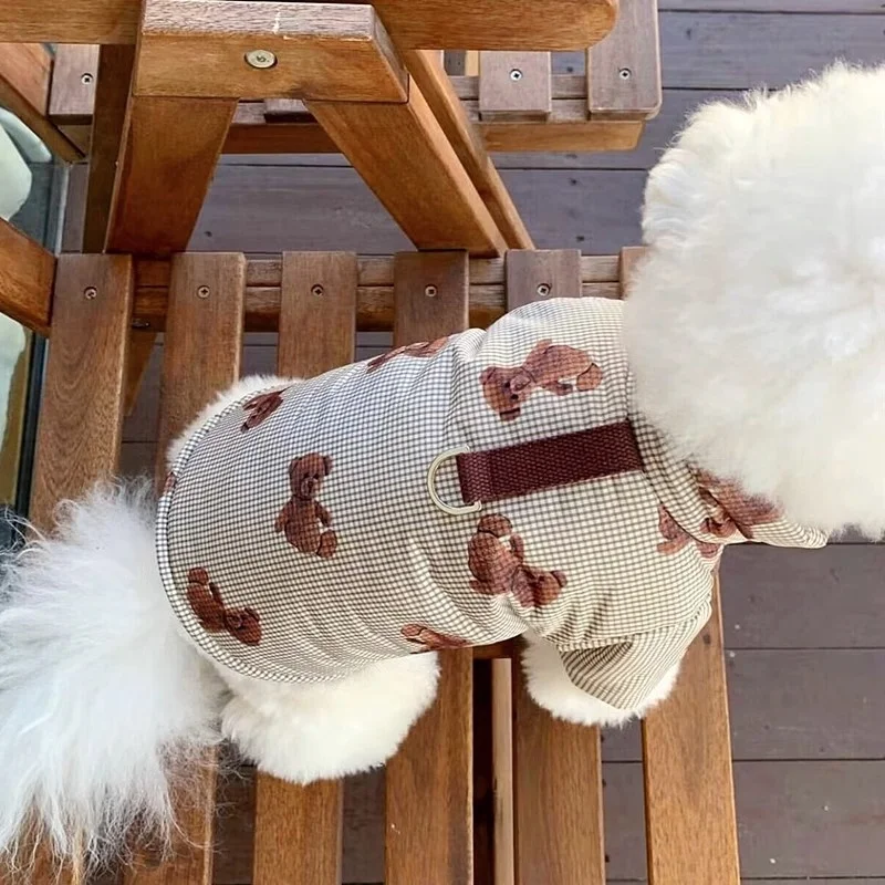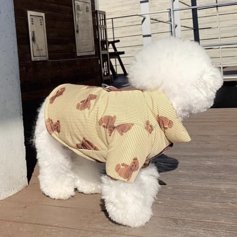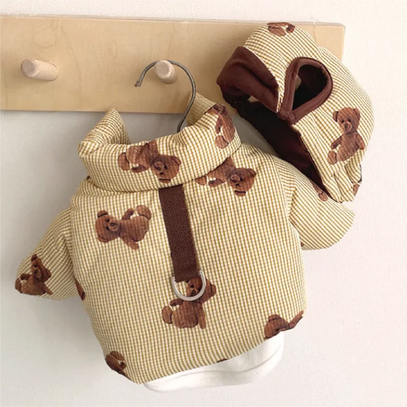 Abrigo de algodón a cuadros para perro, ropa cálida de invierno para perro con sombrero, nueva chaqueta gruesa, abrigo con estampado de oso, chaqueta de plumón de gato, ropa para mascotas